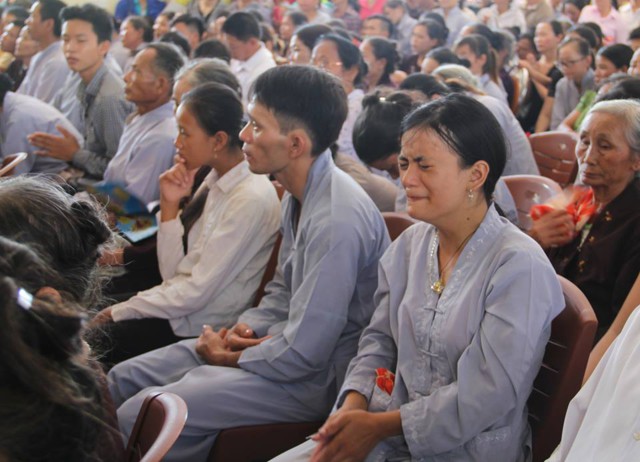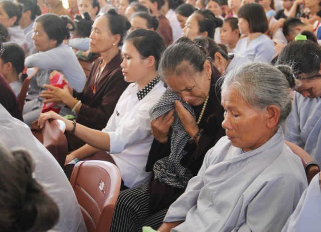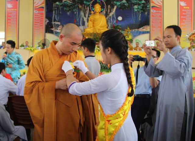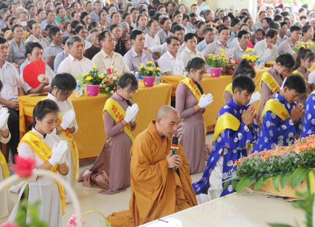 Các tăng ni, phật tử, cùng hàng ngàn người dân đã thực hiện nghi lễ “Bông hồng cài áo” như một lời nhắc nhở mỗi chúng ta luôn nhớ về công ơn sinh thành, dưỡng dục của cha, mẹ với lòng biết ơn sâu sắc nhất.