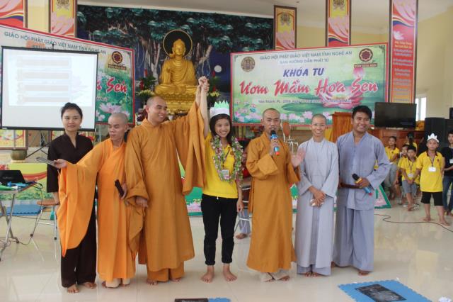 Đăng quang ngôi vị quán quân Game show “Chí Linh anh hùng” tại khóa tu là bạn Nguyễn Thị Loan, pháp danh: Đức Hân, đến từ tỉnh Quảng Trị. Đức Hân đã xuất sắc vượt qua 99 đối thủ và một mình đi đến câu hỏi cuối vòng 2. Bạn đã xứng đáng bánh 3 hồi trống dành cho người chiến thắng và đội chiếc vòng Nguyệt Quế do ĐĐ. Thích Tuệ Minh, phó BTC khóa tu, ĐĐ. Thích Pháp Như, Giảng sư khóa tu, MC chương trình “Chí Linh anh hùng” trao tặng.