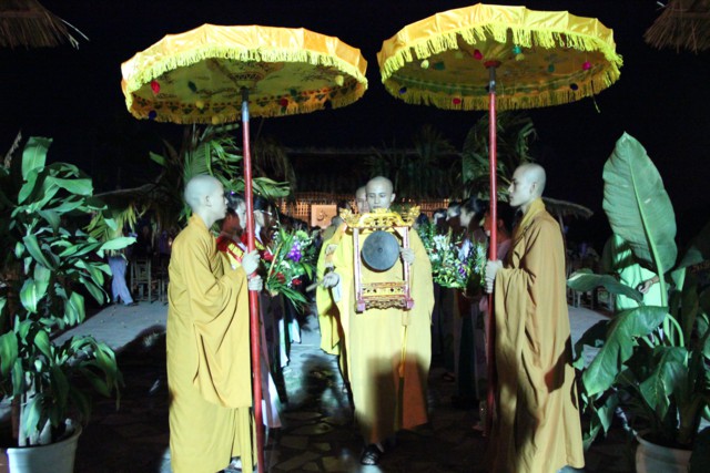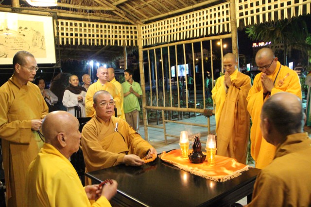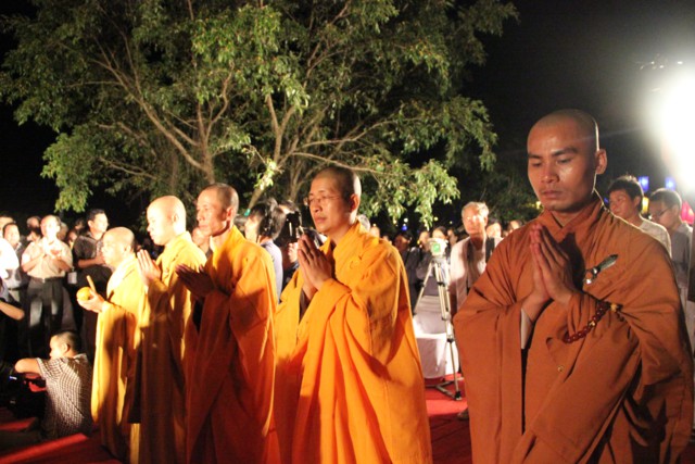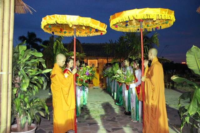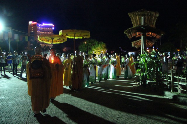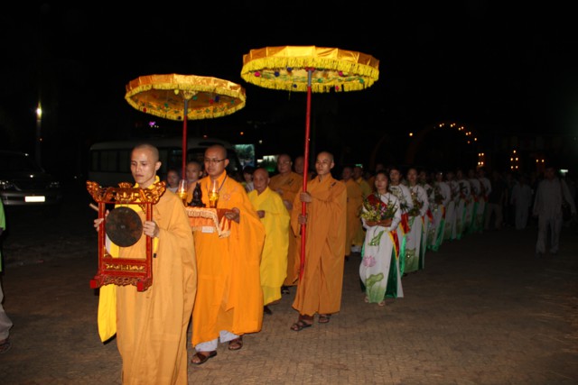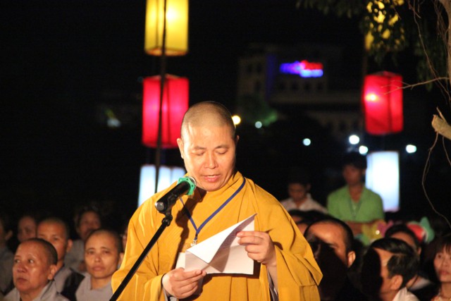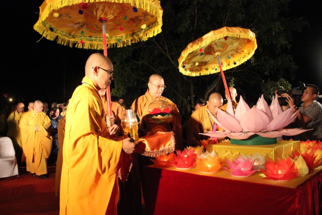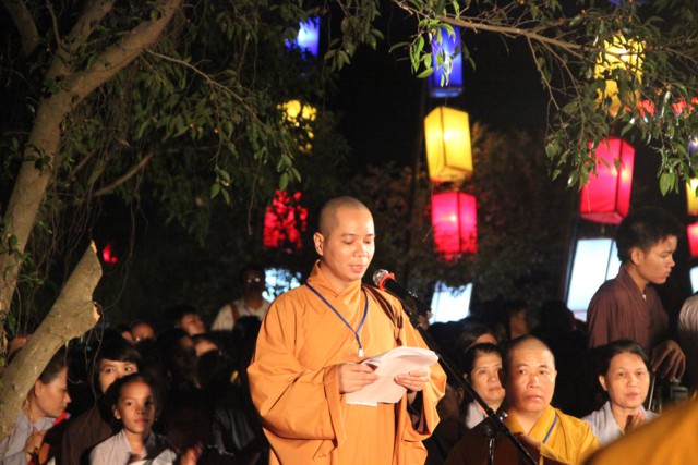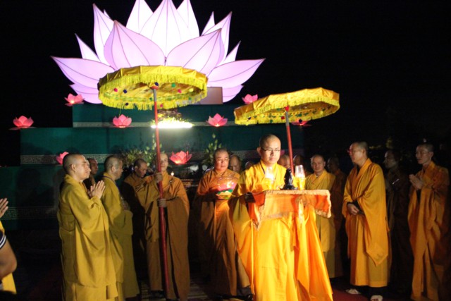 Tại buổi lễ HT Thích Thanh Nhiễu rước ánh sáng từ Phật Đài đến tôn trí tại Đài Đăng, tiếp theo là trỗi nhạc Tâm Luân Cửu Chuyển an vị ánh sáng. TT Thích Thọ Lạc – Phó Ban TT BTS Phật giáo tỉnh Nghệ An – Phó ban TT Ban Tổ chức tuyên đọc diễn văn khai mạc Lễ hội hoa đăng.