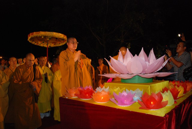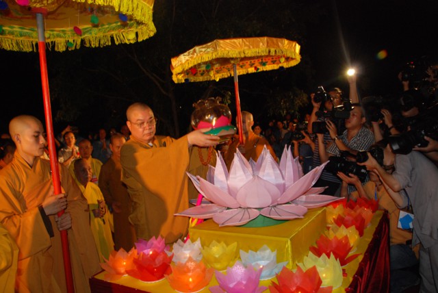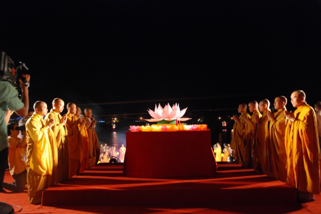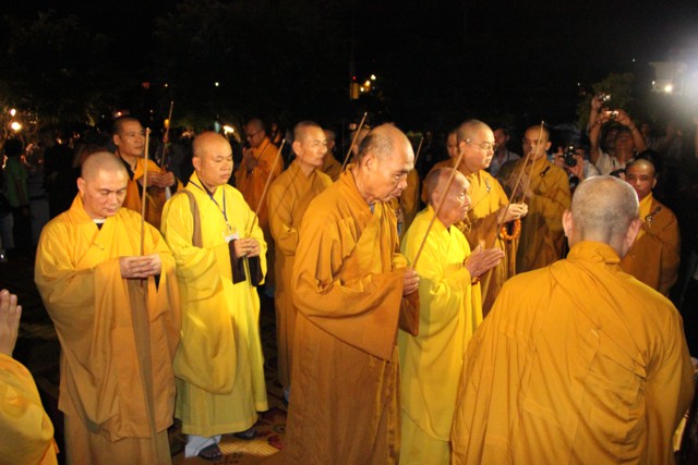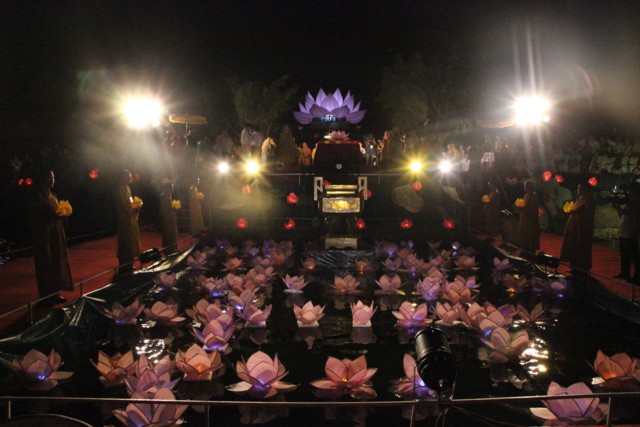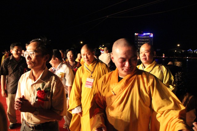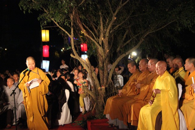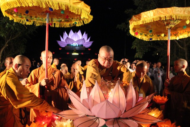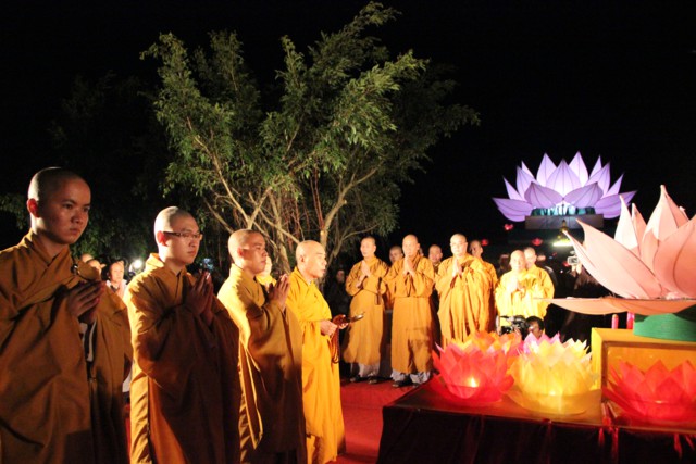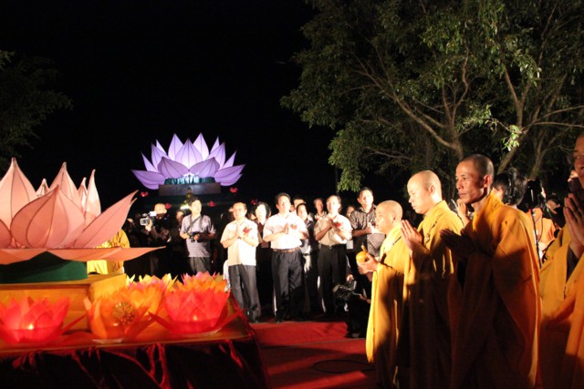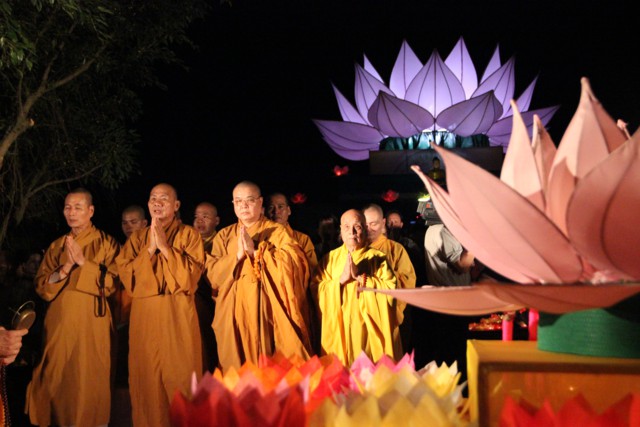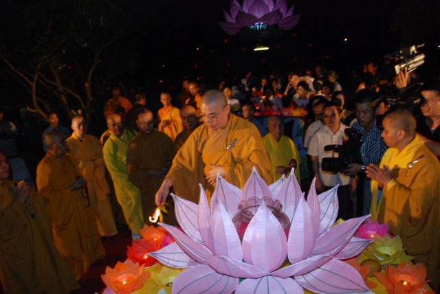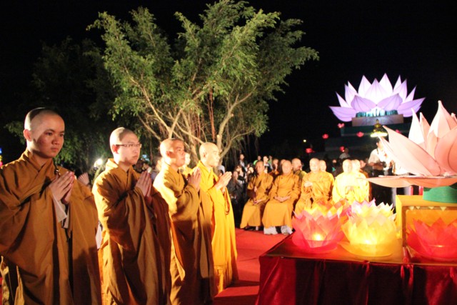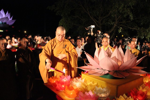 Chư tôn đức cùng quý vị đại biểu chính thức cử hành nghi thức tâm linh Lễ hội Hoa đăng . Ngọn lửa trí tuệ, linh thiêng được chư Tôn thiền đức truyền ánh sáng đến hàng nghìn Phật tử tham dự đã được lan tỏa tại khuôn viên Công viên trung tâm. Nghi thức thả đăng cầu nguyện được tỏa sáng màu nhiệm trong đêm hội cùng tiếng nhạc niệm Phật, tiếp đó là nghi thức tụng kinh cầu nguyện thế giới hòa bình, quốc thái dân an.