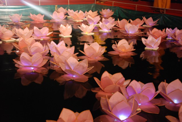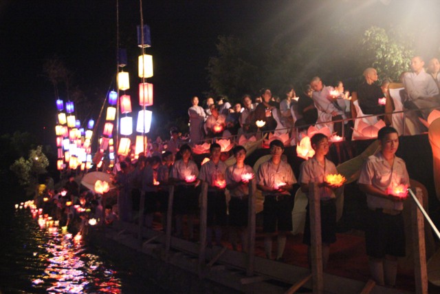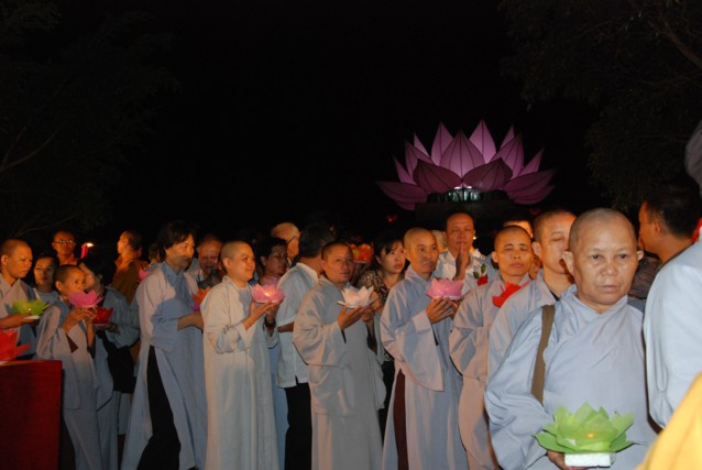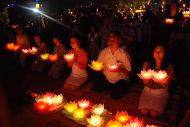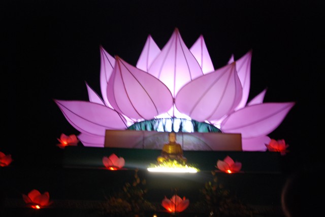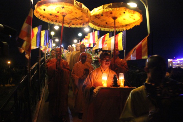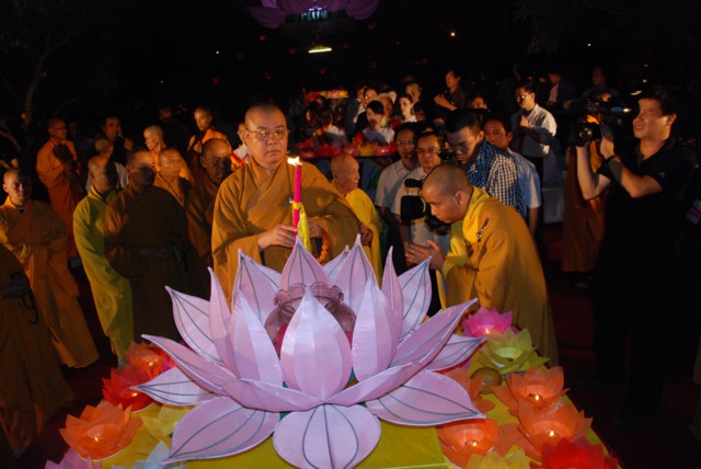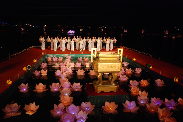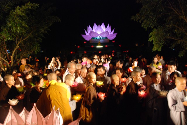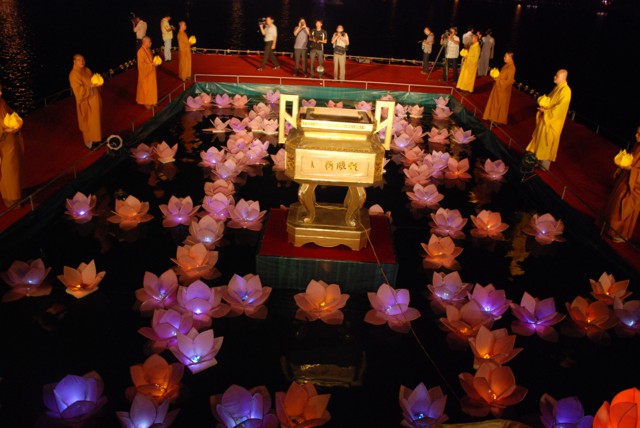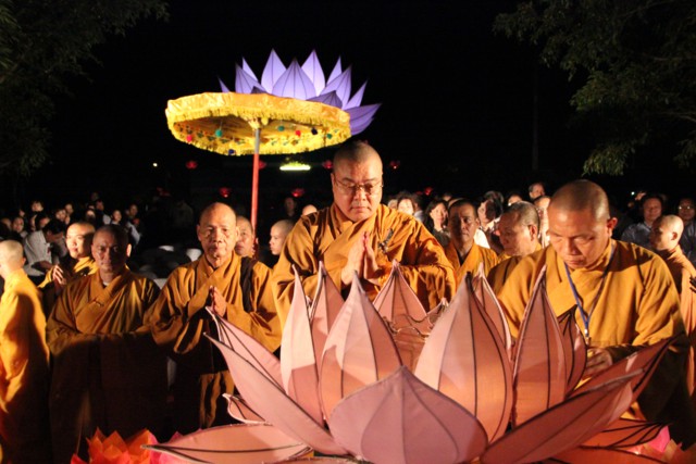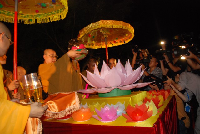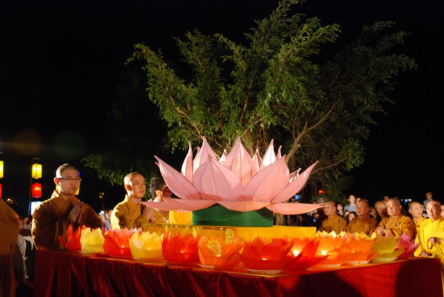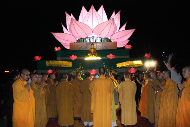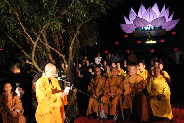 Chư tôn đức cùng quý vị đại biểu chính thức cử hành nghi thức tâm linh Lễ hội Hoa đăng . Ngọn lửa trí tuệ, linh thiêng được chư Tôn thiền đức truyền ánh sáng đến hàng nghìn Phật tử tham dự đã được lan tỏa tại khuôn viên Công viên trung tâm. Nghi thức thả đăng cầu nguyện được tỏa sáng màu nhiệm trong đêm hội cùng tiếng nhạc niệm Phật, tiếp đó là nghi thức tụng kinh cầu nguyện thế giới hòa bình, quốc thái dân an.