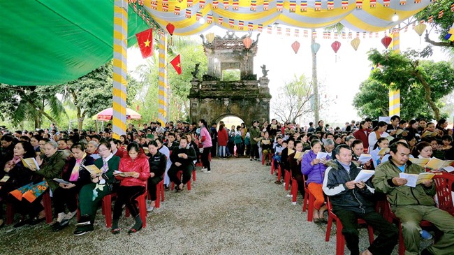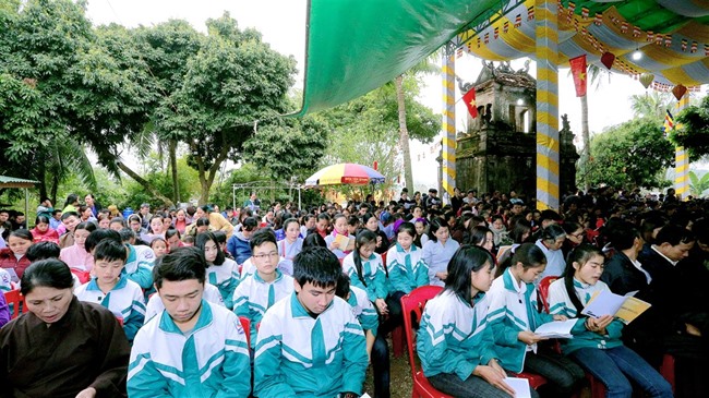 Buổi Lễ còn có sự tham gia của gần 10 nghìn người dân, phật tử cùng hơn 300 thanh niên, sinh viên các tỉnh Hà Nội, Thái Nguyên, Thanh Hóa, Quảng Bình về công quả phục vụ đại Lễ.
