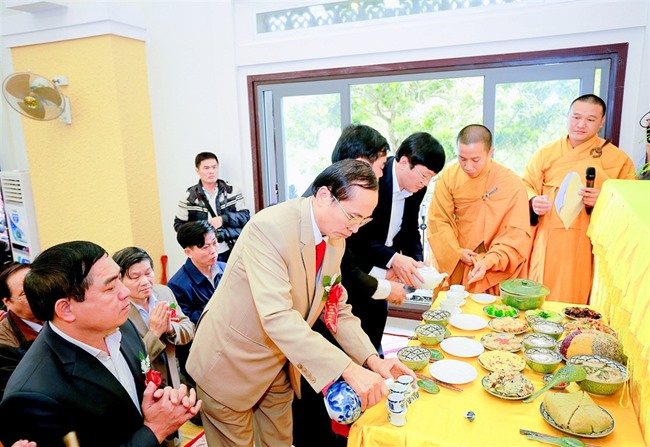 Sau đó là phần nghi lễ tâm linh. Trong không khí ấm áp của buổi Lễ, toàn thể Chư tôn đức Tăng Ni, cùng đông đảo phật tử, các vị Lãnh đạo và quần chúng nhân dân địa phương trang nghiêm hướng về Lễ đàn thực hiện nghi thức cầu nguyện Quốc thái Dân an thật ý nghĩa do TT Thích Chân Quang biên soạn.