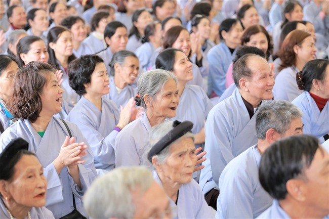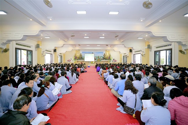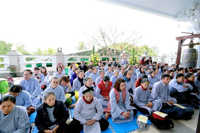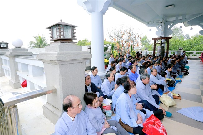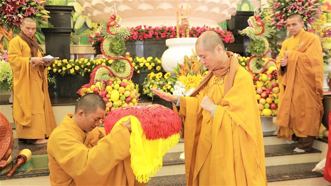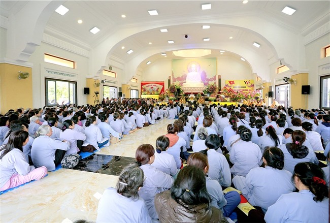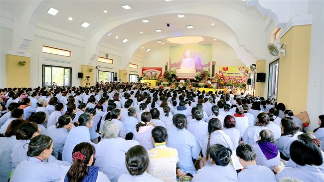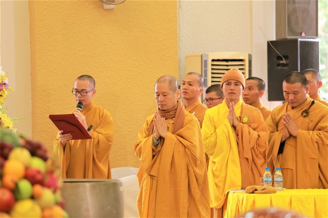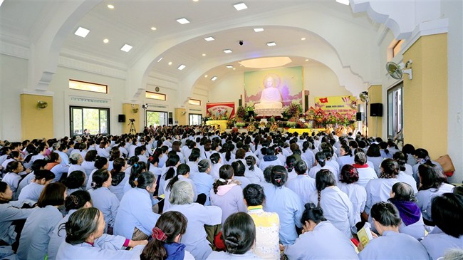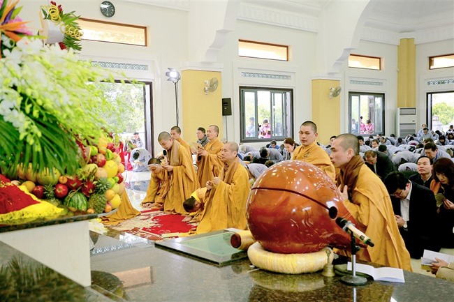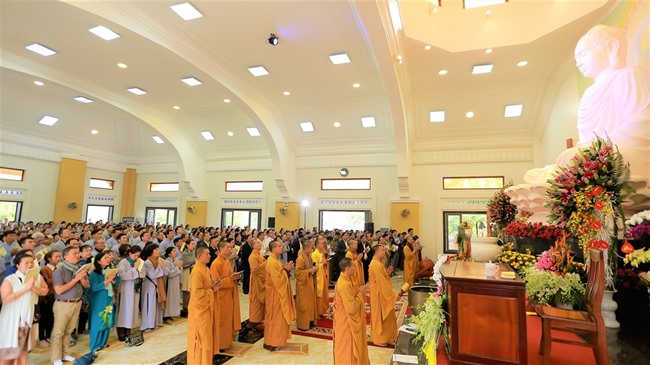 Đúng 9h00”: Buổi Lễ chính thức bắt đầu, khi hồi trống Bát nhã vừa dứt, trong không khí tôn nghiêm và thành kính, tất cả Hội chúng đồng niệm Phật cầu gia bị.