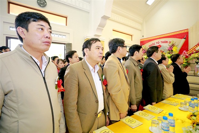 Đặc biệt, trong nghi thức cúng Quốc tổ, trước bàn thờ Quốc tổ, các vị Lãnh đạo cấp cao đã tựu vị niêm hương, tỏ lòng thành kính với Tổ tiên bằng việc dâng đồ cúng (tiến trà, tiến tửu, tiến phạn và tiến bỉnh), tức là dâng trà, dâng rượu, dâng cơm, dâng bánh trái và thực hành nghi thức vái tạ theo lời xướng đọc của vị Chủ lễ.
