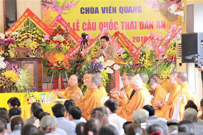Đồng thời, còn có Đại diện Ban Hộ Tự và phật tử các Chùa trên địa bàn tỉnh Nghệ An. Ban quản lý các Đền thờ, các Di tích Lịch sử Văn hóa… Lãnh đạo các Doanh nghiệp, Trường trung cấp Y Khoa miền trung, Làng SOS Vinh, Trung tâm Giáo dục và Dạy nghề Khuyết tật tỉnh Nghệ An, cùng các Trường học, Cơ quan đơn vị trên địa bàn.