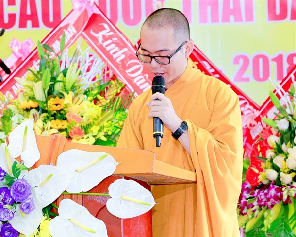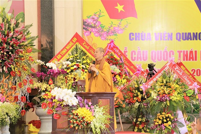 Tiếp theo, TT Thích Chân Quang đã khai Pháp bằng bài Pháp thoại nói về “Ý nghĩa thiêng liêng của đại Lễ cầu nguyện Quốc thái Dân an”.