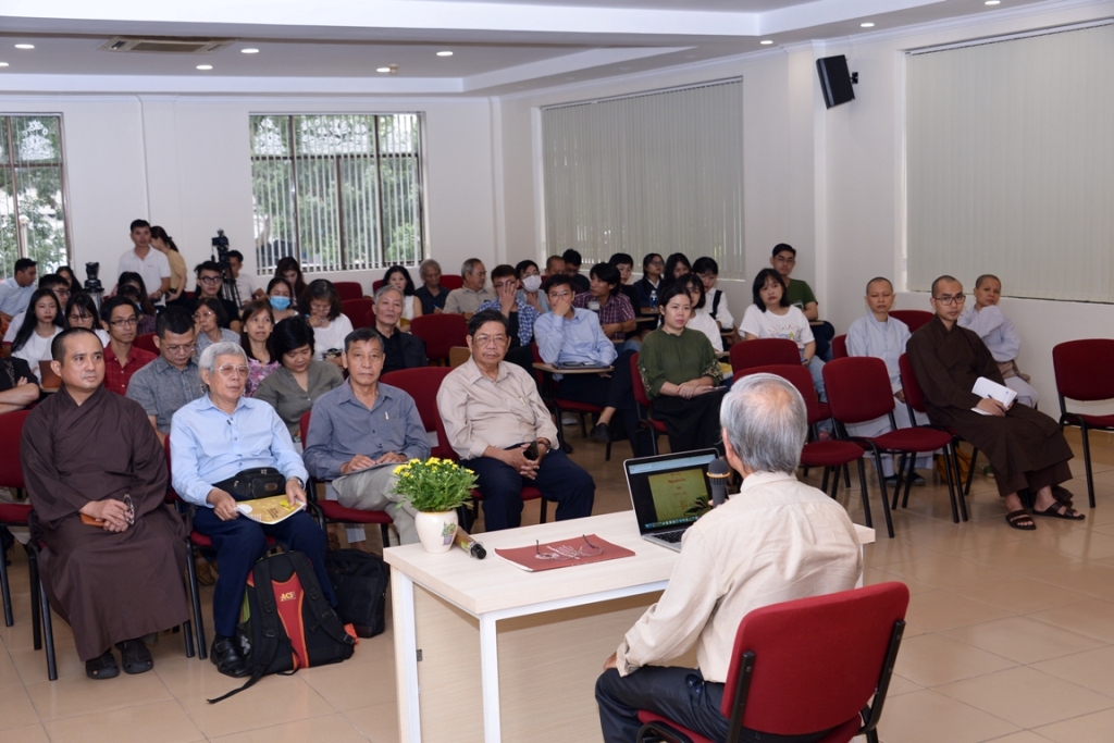 Trong khuôn khổ chương trình, buổi tọa đàm với chủ đề “Duyên nghiệp Thúy Kiều” do nhà nghiên cứu Trần Đình Sơn làm diễn giả đã thu hút sự tham dự của đông đảo thính giả. Mở đầu buổi tọa đàm, thay mặt cho Ban biên tập Báo Giác Ngộ, TT.Thích Tâm Hải, Phó Tổng Biên tập đã có lời chào mừng chư Tăng Ni, các nhà nghiên cứu, những người quan tâm đến cuộc đời và sự nghiệp của Đại thi hào Nguyễn Du, tác phẩm Truyện Kiều, các bạn trẻ là sinh viên của một số trường đại học trong thành phố hiện diện tham dự.