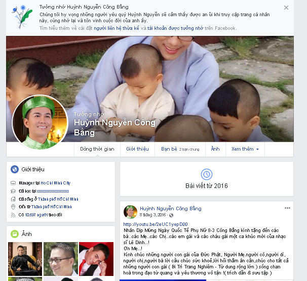 Hiện facebook của Huỳnh Nguyễn Công Bằng vẫn còn giữ lại, như một kỷ niệm với người hâm mộ giọng hát của anh khi truy cập vào tài khoản.