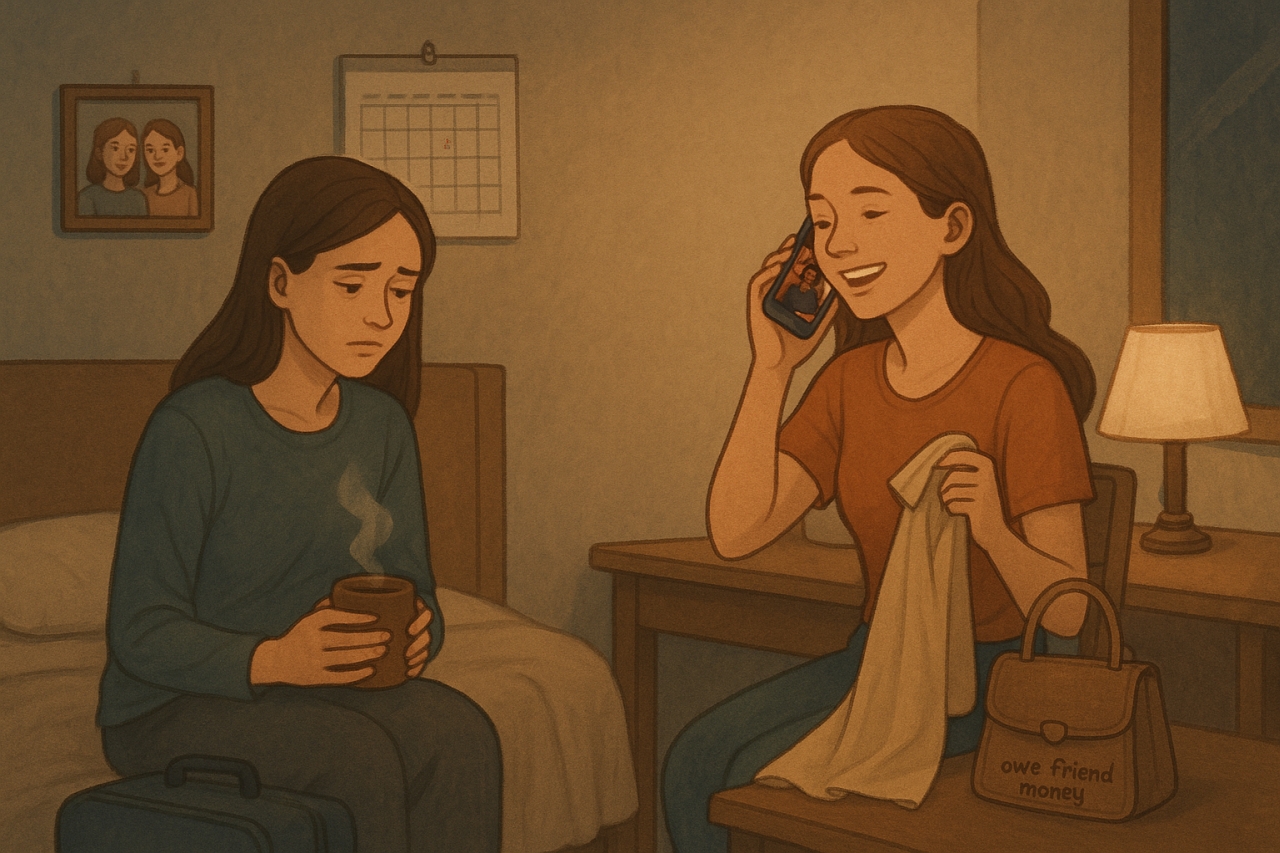 Tôi và bạn cùng phòng là bạn bè từ cấp ba, nhà ở quê gần nhau, bố mẹ tôi và bố mẹ cô ấy thân nhau. Tôi và cô bạn này như chị em ruột thì gắn bó từ thời phổ thông, đậu đại học không chung trường nhưng thuê trọ ở chung, từ đó đến lúc đi làm.