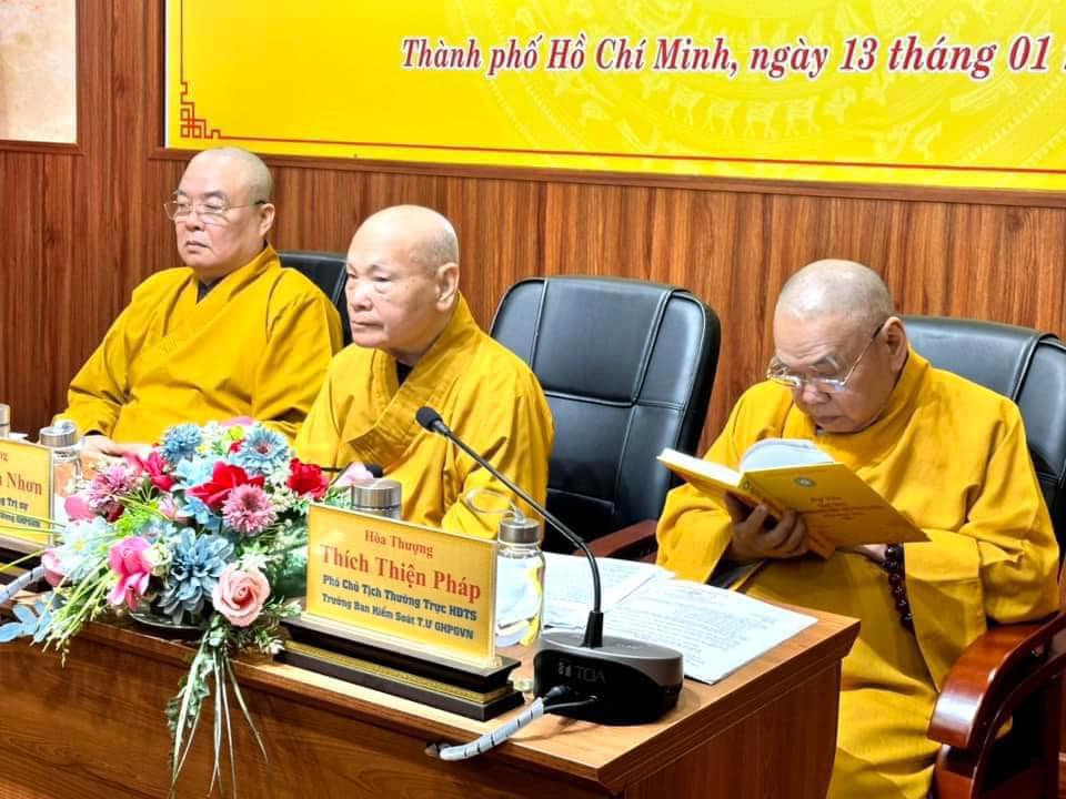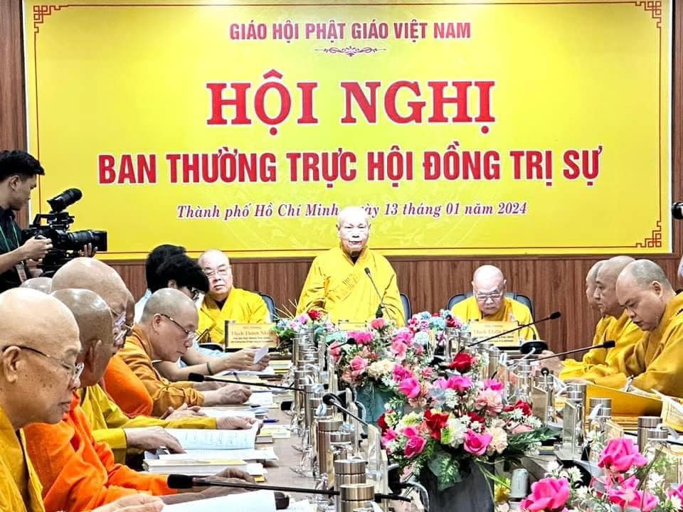 Hội nghị Ban Thường trực Hội đồng Trị sự được tiến hành vào ngày 13-1-2024 tại Văn phòng 2 T.Ư – thiền viện Quảng Đức (TP.HCM) để thảo luận, thông qua dự thảo báo cáo tổng kết hoạt động Phật sự năm 2023, chương trình hoạt động Phật sự năm 2024 và một số công tác trọng tâm của Giáo hội.