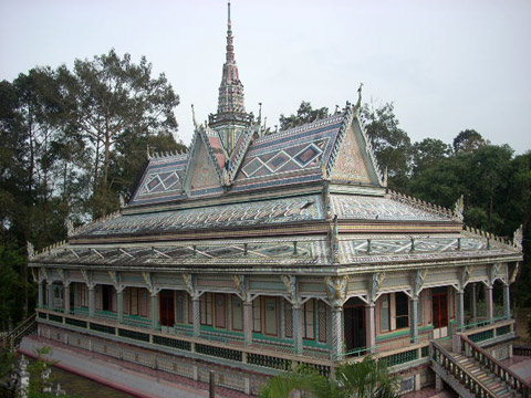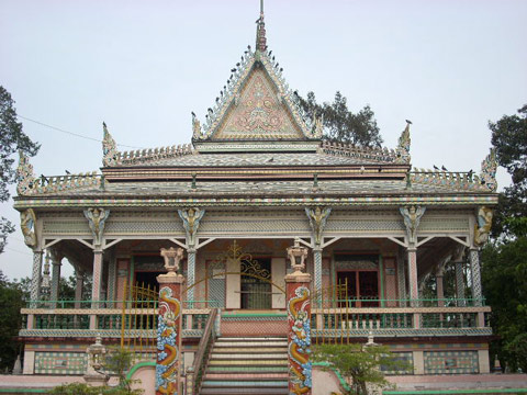 Bên cạnh đó, ở mỗi lớp mái chùa là các hoa văn truyền thống của người Khmer, nổi bật lên bầu trời như một tấm thảm nhiều màu sắc. Kiến trúc của ngôi chùa như phần nào thể hiện được ước vọng an lành và siêu thoát của người Khmer vùng đất này.