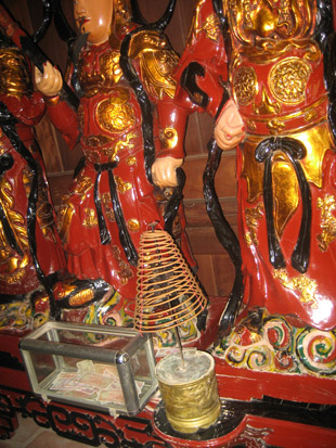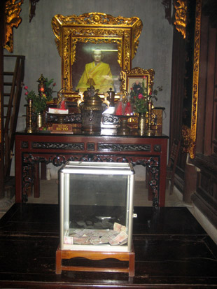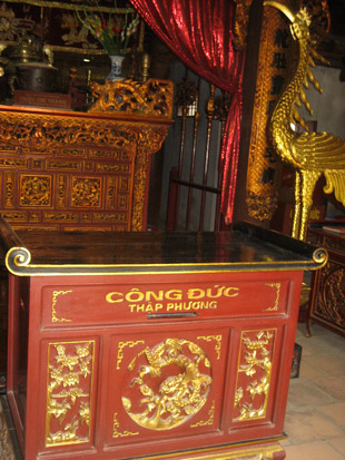 Trong Đại điện, chư Phật, chư Bồ tát được thờ tự cùng với cơ man nào là hòm công đức, đủ các kích cỡ to, vừa, nhỏ; với các chất liệu: thùng xi măng, thùng gỗ, thùng sắt, thùng kính. Chúng há miệng để đón tiền ở tất cả mội chỗ tiện tay nhất, gợi cảm nhất!!! Theo cách đếm số học thì, chùa Hà có tới gần 30 thùng “công đức”. Phản cảm không biết chừng nào!