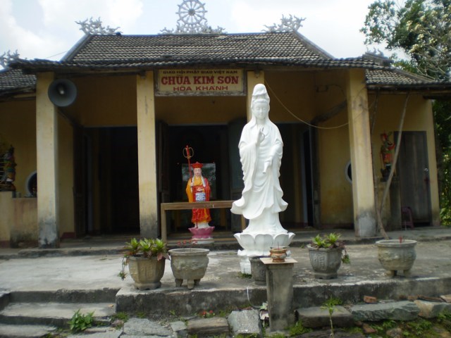 Tuy nhiên, nếu những phật tử ở trung tâm thành phố tình cờ đến vùng ven bán sơn địa sẽ không khỏi ngạc nhiên vì nơi đây có một ngôi chùa, mà nếu so với những chùa ở trung tâm thì nó như một ngôi nhà thời còn chiến tranh, quá đơn sơ, nghèo nàn đến tội nghiệp. Đó là chùa Kim Sơn thuộc địa bàn xã Khánh Sơn, phường Hòa Khánh, quận Liên Chiểu.