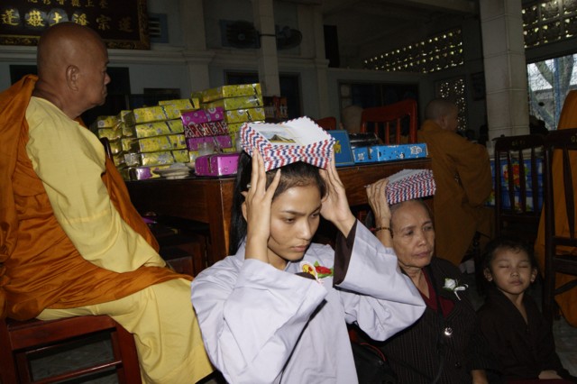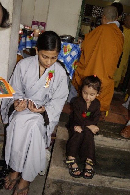 Sau lễ dâng y Cô cùng mẹ và các em sang thăm chùa Sư Cô Hương Nhũ, đảnh lễ và làm lễ cài hoa hồng cho mẹ và Ngoại.