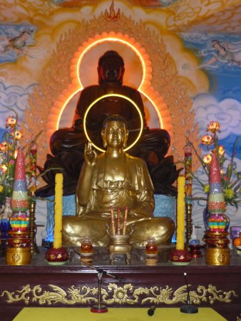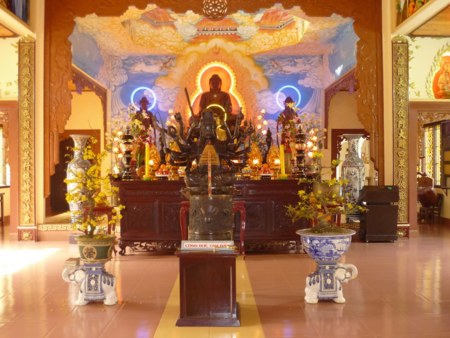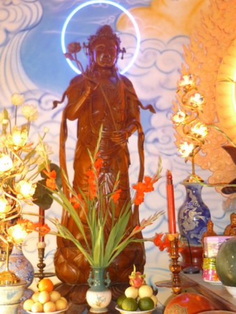 Đặt biệt, những tác phẩm thánh tượng như: Đức Bổn Sư, Bồ Tát Quán Thế Âm cưỡi rồng vượt sóng biển, Tổ Bồ Đề Đạt Ma, Hộ Pháp , Tiêu Diện v.v… được tạo nên bằng đôi bàn tay khéo léo cộng với lòng đam mê nghệ thuật.