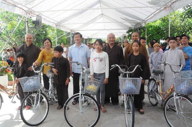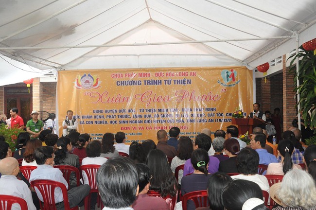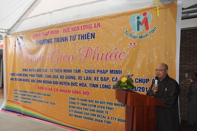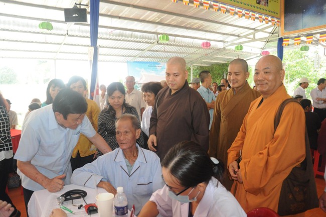 Chứng minh và tham dự chương trình từ thiện, gồm có: Ông Trương Tấn Sang: Nguyên UV Bộ Chính Trị, Nguyên Chủ tịch nước CHXHCNVN; bà Mai Thị Hạnh: Phu nhân nguyên Chủ tịch nước; Hòa thượng Thích Minh Thiện: Ủy viên Hội đồng Trị sự, Phó Trưởng ban Hoằng pháp Trung ương, Trưởng ban Trị sự Giáo hội Phật giáo Việt Nam; TT Thích Thanh Phong: UVTT HĐTS, Trưởng ban KTTC TƯ, Trụ trì tổ đình Vĩnh Nghiêm; HT Thích Chơn Tịnh: Phó Trưởng ban TTXH báo Giác Ngộ; Hòa thượng Thích Thiện Phúc: Trưởng ban Trị sự Giáo hội Phật giáo Việt Nam liên huyện Đức Hòa-Đức Huệ; Thượng tọa Thích Lệ Tấn: Phó Trưởng ban Thường trực Ban Trị sự Giáo hội Phật giáo Việt Nam liên huyện Tân Thạnh, thị xã Kiến Tường, Vĩnh Hưng; ĐĐ Thích Quảng Lâm: Phó Thư ký kiêm Chánh văn phòng Ban KTTC TƯ; cùng Chư Tôn đức Tăng.