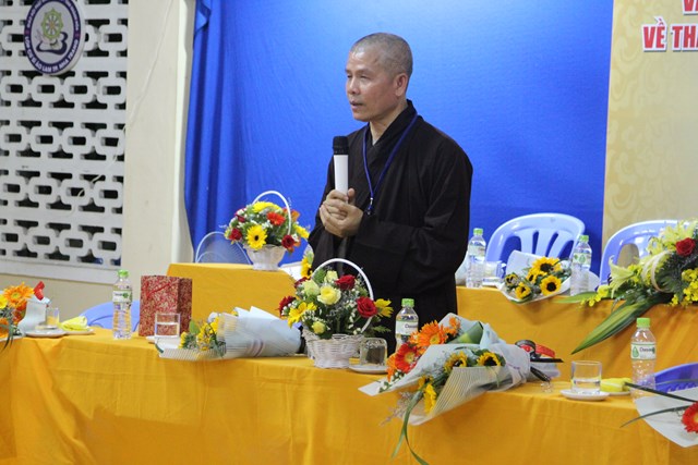 Mở đầu buổi lễ, TT. Thích Thông Huệ thay mặt toàn thể học viên lớp học gửi lời tri ân sâu sắc đến Chư Tôn Đức Ban Hoằng Pháp TW. Quý Ngài đã bớt chút thời gian về thăm và có những lời sách tấn quý báu cho lớp học. Những lời sách tấn của Chư Tôn Đức giúp Ban Hoằng Pháp Tỉnh Khánh Hòa vững bước hơn trên chặng đường phía trước.