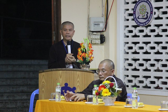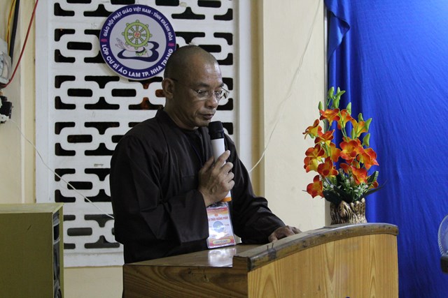 Tiếp nối chương trình, TT. Thích Huệ Giáo – Phó Ban Hoằng Pháp Tỉnh Khánh Hòa đã báo cáo đôi nét về Lớp học. Lớp học Phật pháp Cư sĩ Áo Lam Tp. Nha Trang đến nay đã là khóa thứ 2. 20 năm kể từ ngày đầu khai giảng, lớp được sự dẫn dắt của HT. Thích Huệ Quang, HT. Thích Trí Viên và hiện tại là TT. Thích Thông Huệ. Chặng đường vừa qua, Lớp luôn nhận được sự quan tâm chỉ đạo sát sao của BTS GHPGVN Tỉnh Khánh Hòa nói chung và Ban Hoằng Pháp Tỉnh Khánh Hòa nói riêng. Tổng số học viên của lớp luôn được duy trì ở con số 150 học viên, được hướng dẫn phụng sự như một hoằng pháp viên chân chính theo tinh thần tốt đời đẹp đạo.