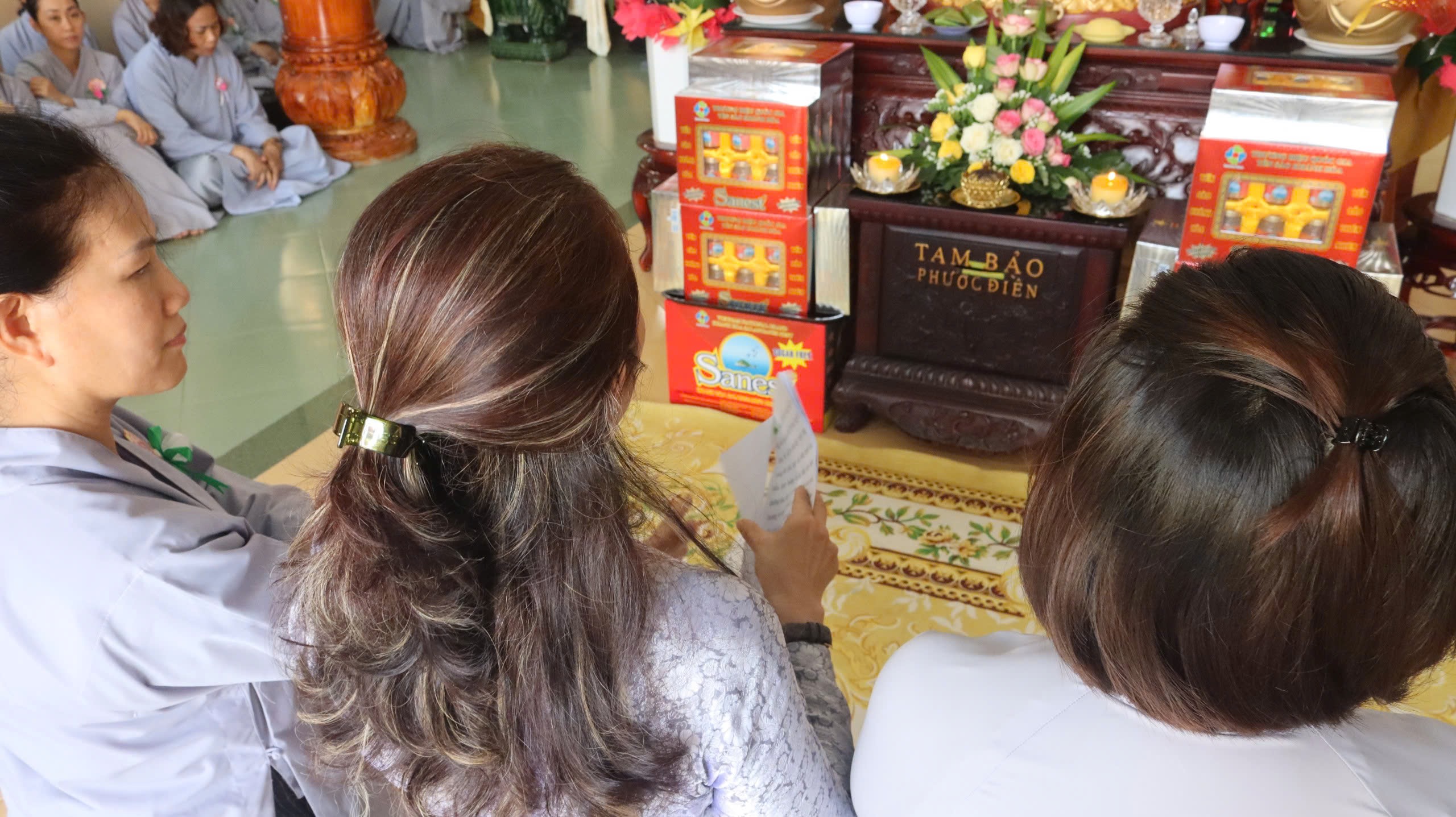 Sau nghi thức dâng hoa cúng dường, cài bông hồng, đại diện phật-tử dâng lời tác bạch,