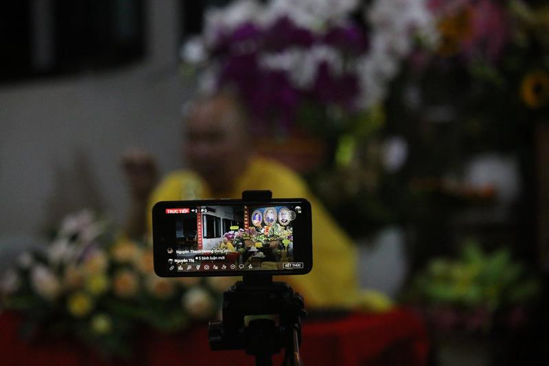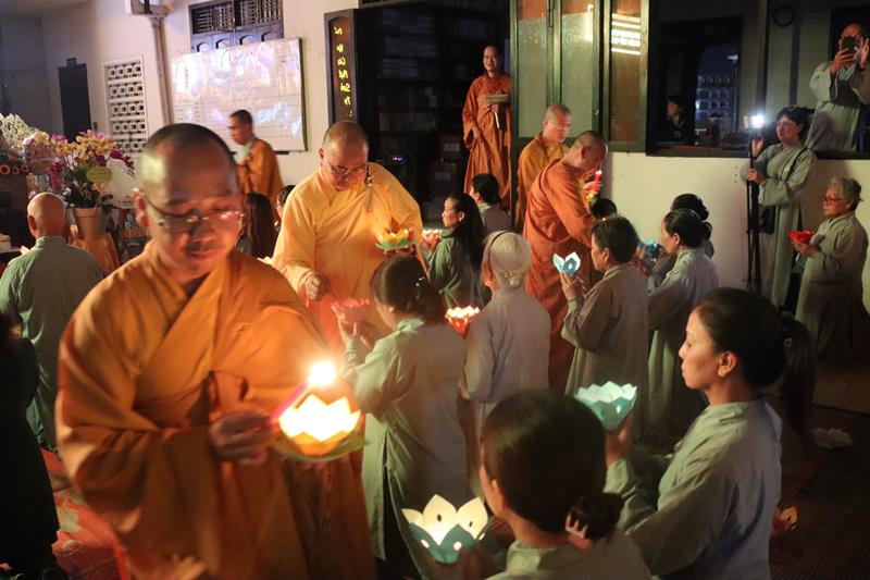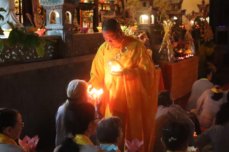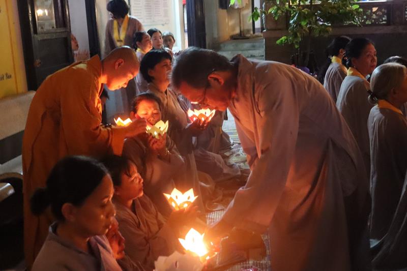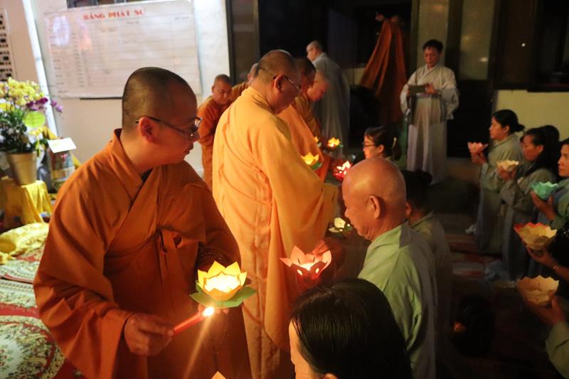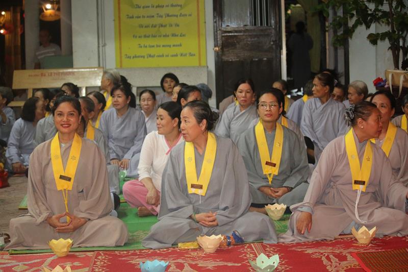 Buổi lễ kết thúc vào lúc 21h sau khi Thượng toạ Thích Trung Đạo, trụ trì chùa Phật Ân (huyện Long Thành, tỉnh Đồng Nai) đã quang lâm đăng đàn pháp thoại cùng đạo tràng.