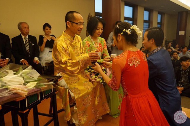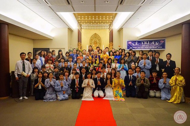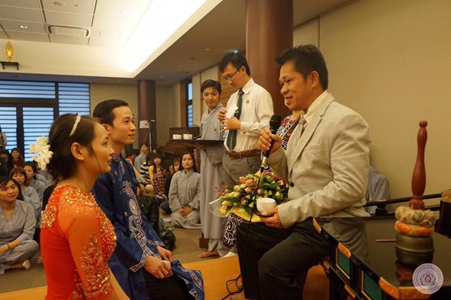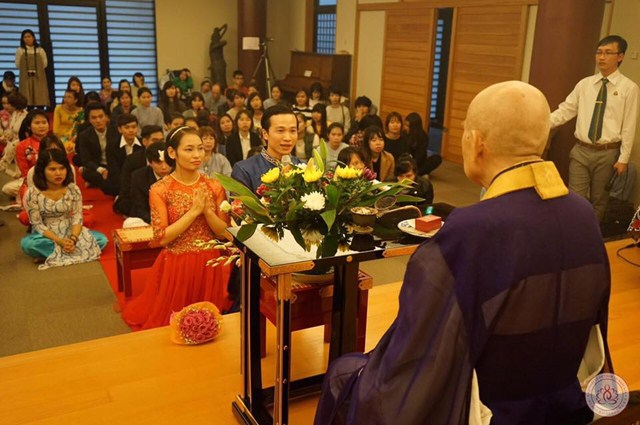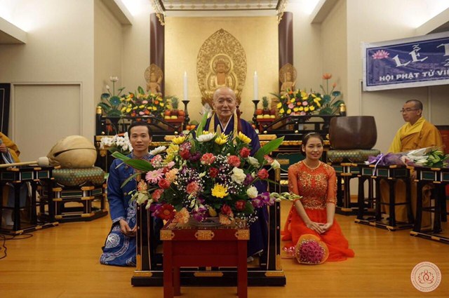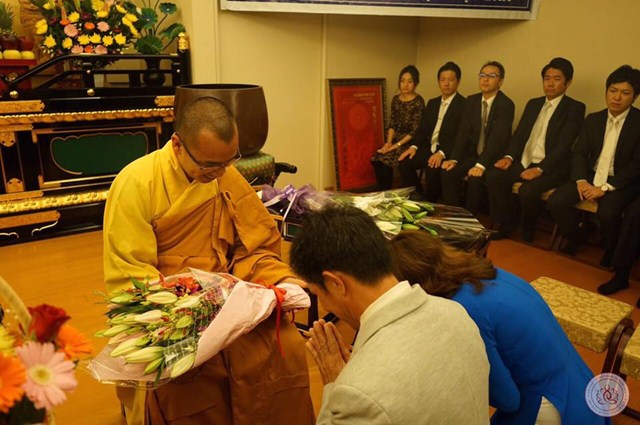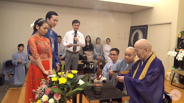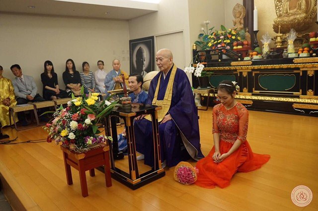 Buổi chiều cùng ngày đã diễn ra buổi lễ hằng thuận của đôi bạn trẻ Việt Nam đang học tập, sinh sống tại Nhật Bản: Phật tử Tân lang: Hoàng Xuân Hùng và Phật tử Tân nương: Nguyễn Thị Sâm (PD: Diệu Tánh). Buổi lễ hằng thuận đã diễn ra trong không khí ấm áp và tràn ngập niềm hạnh phúc dưới sự chứng minh và chúc phúc của Đại lão Hòa Thượng Yoshimizu Daichi cùng Sư cô Thích Tâm Trí và Đại Đức Thích Tâm Hòa. Đôi Tân Lang và Tân Nương đã đối trước Tam Bảo, đối trước chư Tăng hiện tiền phát nguyện sẽ yêu thương nhau trọn đời và cố gắng tu tập, thực hành theo đúng lời Phật dạy để gia đình có được cuộc sống an lạc, hạnh phúc. Buổi lễ hằng thuận đã diễn ra trong không khí hân hoan cùng với đó là những lời chúc mừng tốt đẹp nhất từ Hòa thượng trụ trì, chư Tăng, Hội Phật tử Việt Nam tại Nhật Bản và toàn thể những người tham dự buổi lễ.