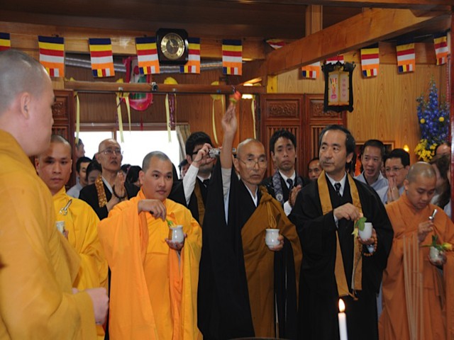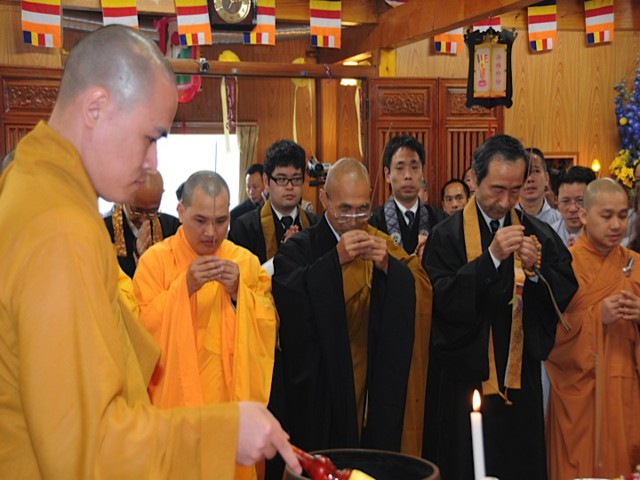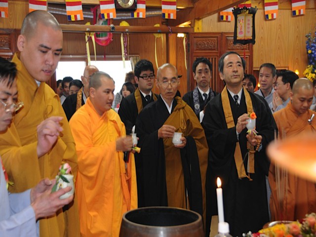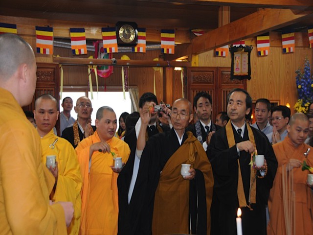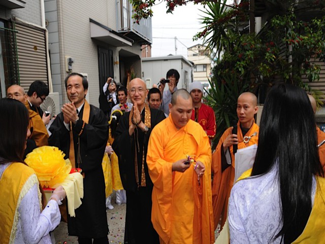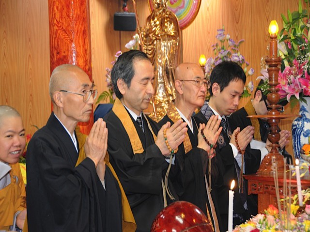 Buổi lễ diễn ra trong không khí hân hoan hạnh phúc dưới sự chú nguyện của Chư tôn đức Tăng, Ni Việt Nam, đang du học tại Nhật bản. Về phía chư Tăng Việt Nam có: Thượng tọa Thích Minh Quang, Viện chủ Tổ đình Quán Âm ở Mỹ. ĐĐ Thích Phước Điền, ĐĐ Thích Quảng Niệm, ĐĐ Thích Hải Nguyện, ĐĐ Thích Tịnh Ân, ĐĐ Thích Tường Nghiêm, Sư cô Thích Nữ Như Tâm. Về phía Nhật Bản có: Hòa thượng Takaoka Shucho trú trì Chùa Đức Lâm, Nagoya, Giáo sư Wakahara shusho cùng chư Tăng Nhật bản, các giáo sư trường Đại học Ryukoku, Kyoto, các Sơ của tôn giáo bạn và đông đảo quý vị đồng hương, Phật tử từ Tokyo, Kyoto, Osaka, Himeji, Yao, Kobe.. cùng về tham dự.