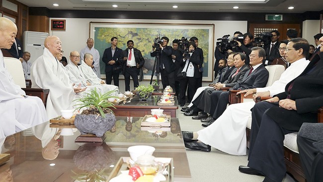 Tổng thống thứ 12 của Hàn Quốc Moon Jae-in đã đến viếng thăm Tổ đình Tào Khê, trụ sở Thiền phái Tào Khê, Phật giáo Hàn Quốc vào ngày 28/11. Vị Tổng thống đương nhiệm đã đến viếng thăm Tổ đình Tào Khê, 3 năm rưỡi kể từ lần cuối đến nơi đây là vào Đại lễ Phật Đản tháng 05/2014.