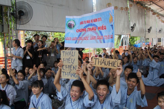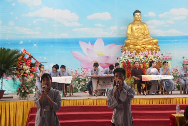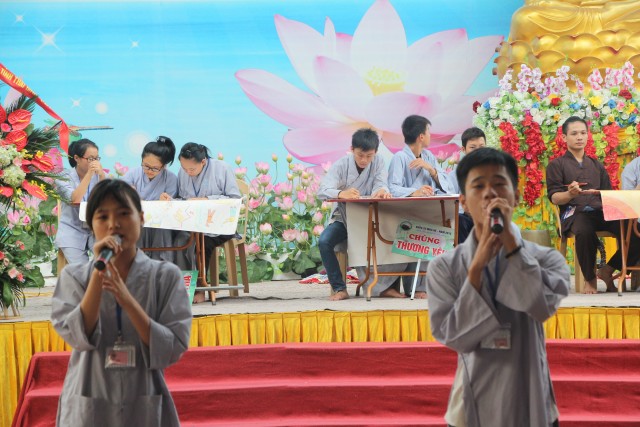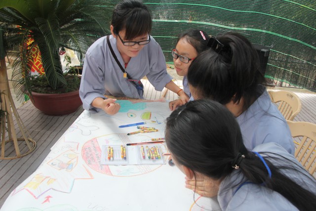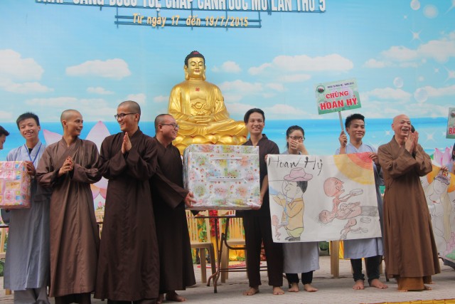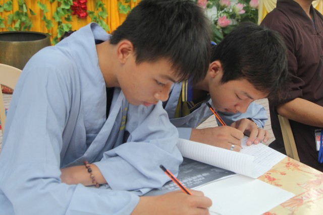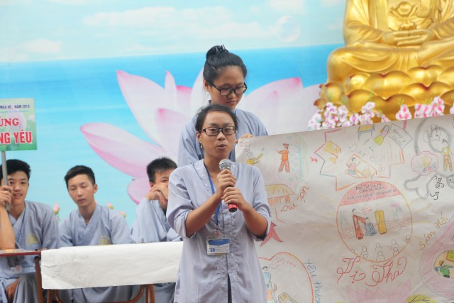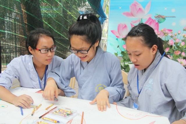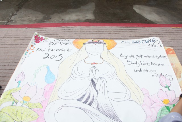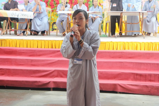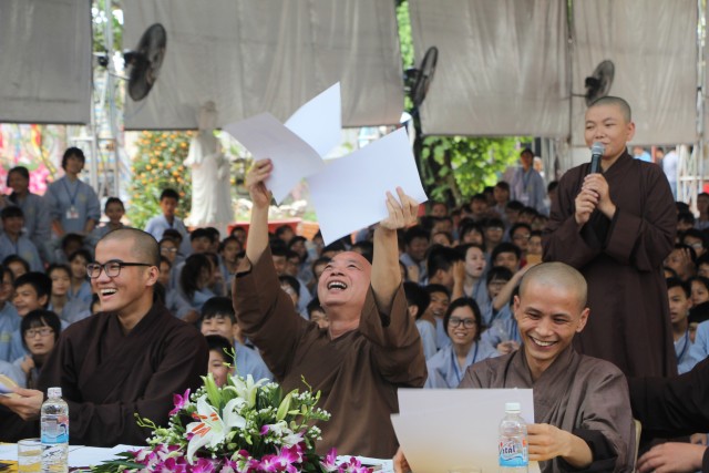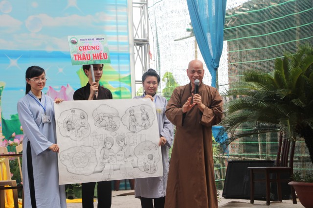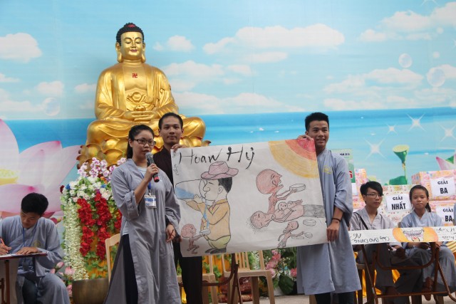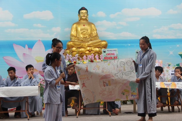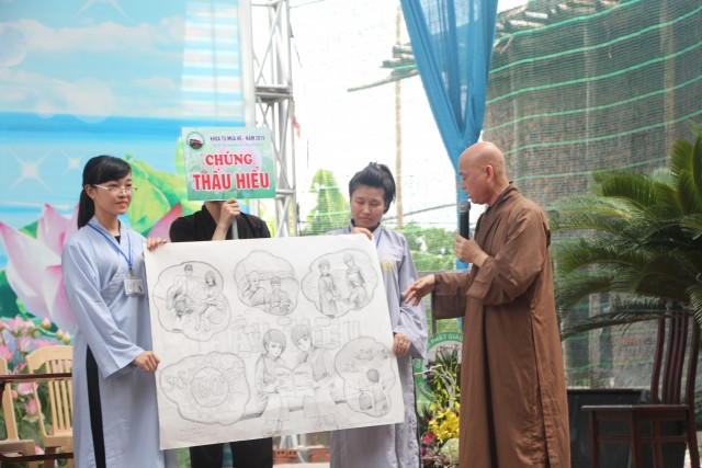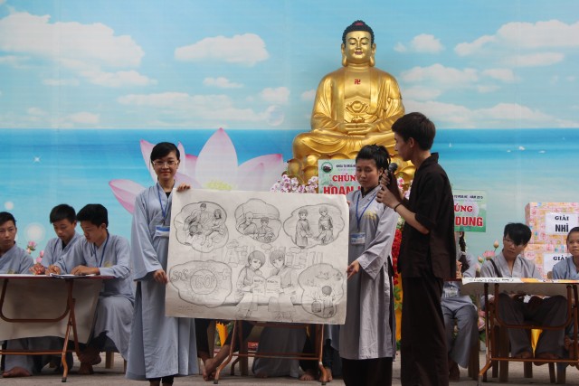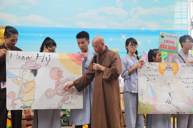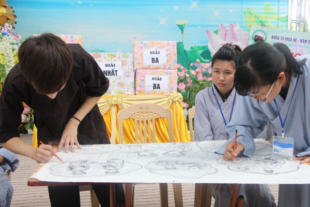 Sau đó, năm chúng trong khóa tu đã có những giây phút hết sức sôi động trong cuộc thi “vẽ tranh thuyết trình về Phật pháp. Mỗi chúng một màu sắc, một ý tưởng, một lời thuyết trình riêng khiến các quý thầy trong ban giám khảo hết sức bất ngờ và quyết định trao đồng giải Nhất trong cuộc thi cho năm bức tranh.
