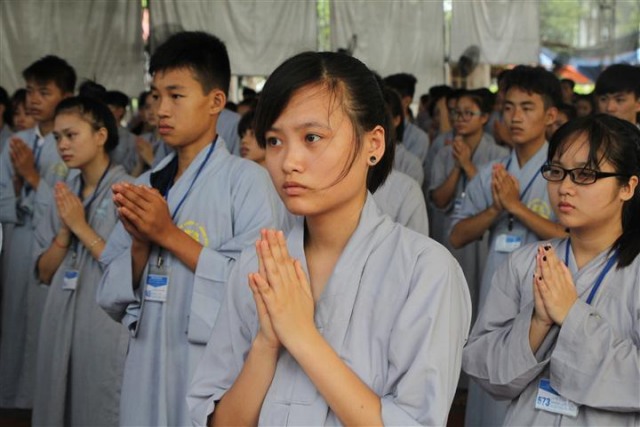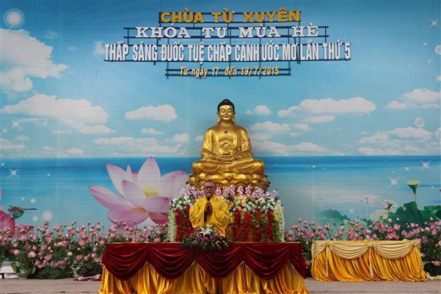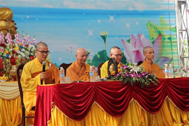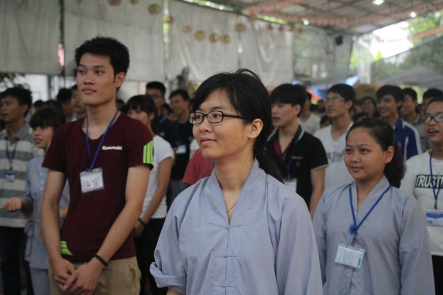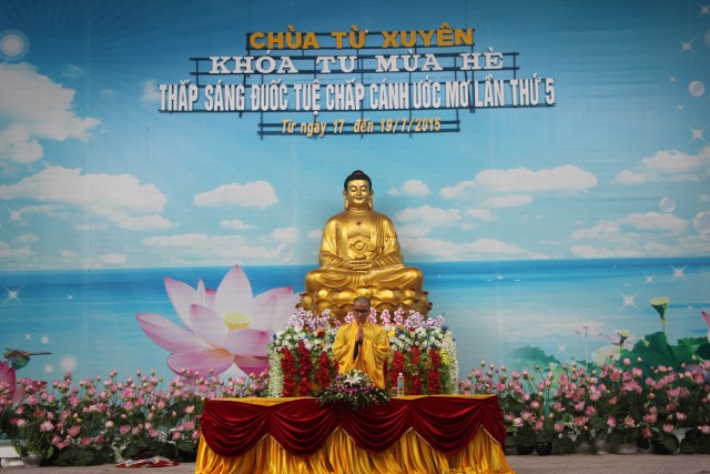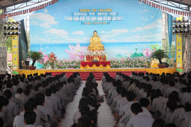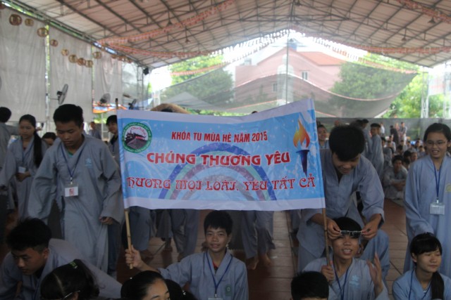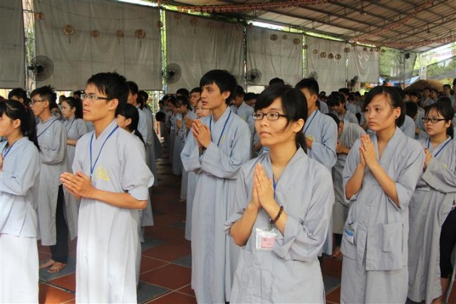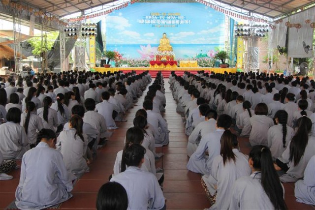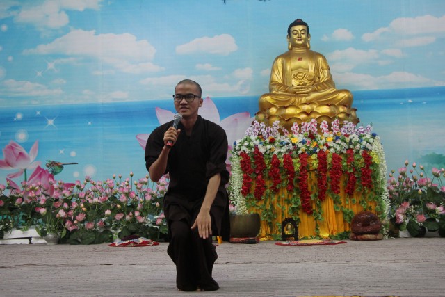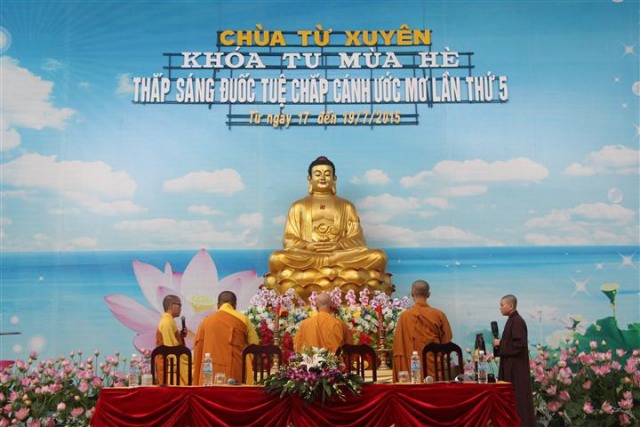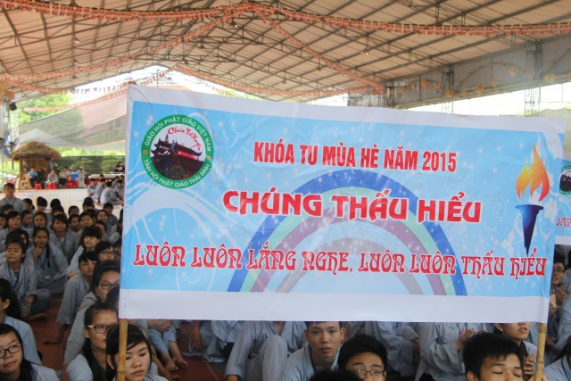 Trước khi bước vào lễ quy y Tam Bảo, đại chúng đã được nghe ĐĐ.Thích Tâm Kính, Phó BTC khóa tu thuyết giảng về “Tam quy, ngũ giới và ý nghĩa của quy y Tam Bảo”. Qua thời pháp, các bạn đã hiểu thế nào là “Phật, Pháp, Tăng”; lịch sử đức Phật Thích Ca và năm giới: không sát sinh, không trộm cắp, không uống rượu, không nói dối, không tà dâm. Sau đó, đại chúng cùng lạy Phật sám hối ba nghiệp, lãnh thọ ba quy y và năm giới của hàng Phật tử. Cuối cùng, Thượng tọa trụ trì đã ban lời sách tấn cho các tân Phật tử cần chuyên cần giữ giới, làm lành, lánh dữ, trở thành người tốt. Buổi lễ kết thúc lúc 17h trong sự hoan hỷ của quý thầy và các bạn thiện sinh.
