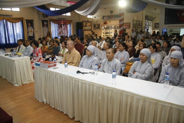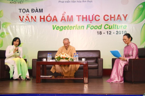Trên 200 người, đặc biệt có rất nhiều bạn trẻ tham dự đã lắng nghe Thượng tọa (TT) Thích Phật Đạo và bác sĩ dinh dưỡng Lê Kim Huệ là hai nhân vật chính trực tiếp dự vấn đáp của buổi tọa đàm, do bà Hồ Đắc Thiếu Anh là hội viên Trung tâm Unesco Phát triển văn hóa Ẩm thực dẫn trương trình.