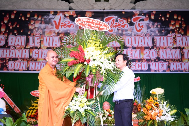 Hòa thượng Thích Quang Đạo – Phó ban Trị sự kiêm Trưởng ban Hoằng pháp tỉnh Đồng Nai, Phó Hiệu trưởng Trường TCPH tỉnh, thay mặt Ban chứng minh, ban đạo từ: “Chúng tôi lấy làm vui mừng vì đã đóng góp được phần nào cho bộ mặt Phật giáo tỉnh nhà. Ngưỡng mong, tôn tượng Quan Âm sau khi khánh thành sẽ mang lại nhiều phước lành và duyên may cho tất cả Phật tử đến chiêm bái lễ lạy. Mong an lạc & bình an đến cho đất nước”.