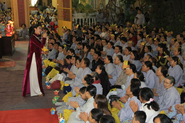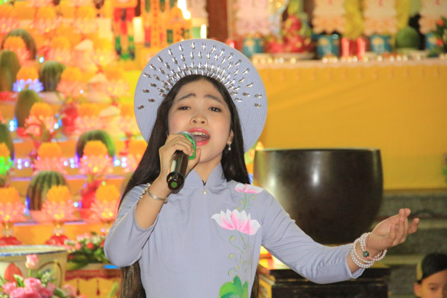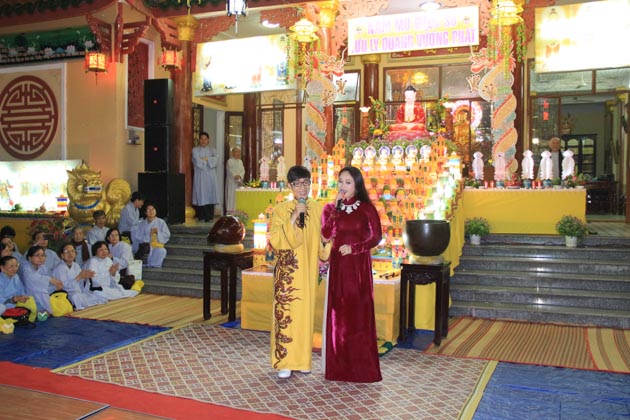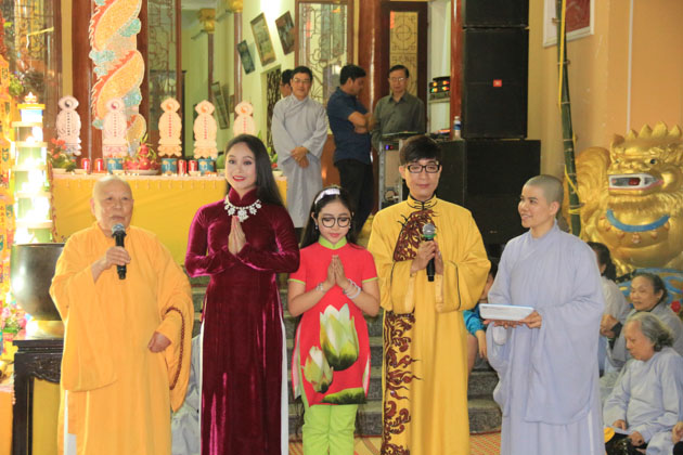 Trong không khí vui tươi của những ngày đầu xuân với niềm hỷ lạc của những người con Phật, ca sĩ Nguyễn Đức cùng diễn viên Trung Hậu, ca sĩ nhí Hồng Minh đã biểu diễn những bản nhạc Phật giáo cúng dường đại lễ.