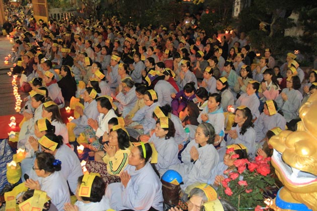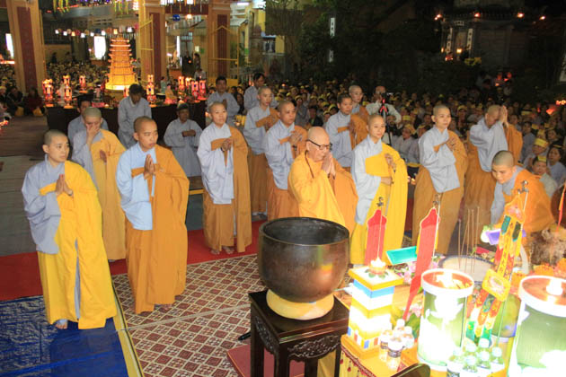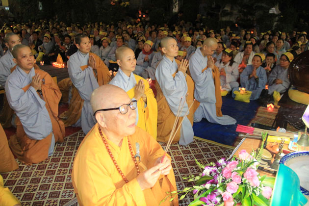 Ni trưởng Thích Nữ Diệu Cảnh – UV HĐTS GHPGVN, Trưởng ban TTXH BTS GHPGVN Tp Đà Nẵng, Trú trì tổ đình Bảo Quang cùng Ni chúng tại bổn tự đã trang nghiêm tiến hành nghi lễ cầu an với tâm nguyện cầu cho mưa thuận gió hòa, quốc thái dân an, thế giới hòa bình, chúng sanh an lạc.
