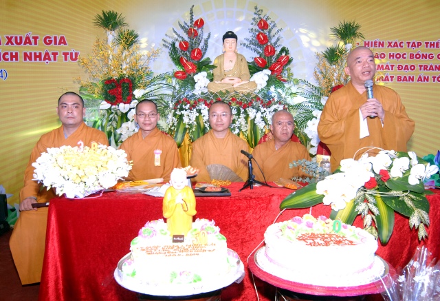 Trong lời đạo từ cuối chương trình, TT. Thích Nhật Từ đã bày tỏ sự ưu tư, nỗi niềm gửi gắm đến các đệ tử tại gia và xuất gia của mình. Thầy nói: “Các vị tu sĩ phải học Phật đến nơi đến chốn, chương trình cử nhân ngày nay là chưa đủ, mà phải hoàn thành cấp bậc thạc sĩ, tiến sĩ trong hoặc ngoài nước. Sau khi hoàn tất chương trình học, hãy trở về quê hương phát nguyện dấn thân, phụng sự theo điều kiện và năng lực của mình, hướng dẫn lại cho những Phật tử đi sau chúng ta. Vai trò của tu sĩ chúng ta trong cuộc đời là rất lớn, hôm nay thầy nhắc chuyện này để cho các đệ tử xuất gia của thầy hiểu, trong quá trình tu tập tại chùa Giác Ngộ, thầy không muốn đệ tử của mình làm thị giả mình, hầu mình, phụng sự cho mình, thậm chí thầy phải tự lái xe đi, hoặc các công việc Phật sự rất nhiều thứ thầy cũng tự giải quyết mà không có thư ký, thị giả để hỗ trợ, vì thầy không muốn làm mất thời gian học của các đệ tử, để quý vị đầu tư toàn bộ thời gian cho việc học. Với hy vọng sau bốn năm xuất gia, quý vị sẽ lột được xác phàm, trở thành người hướng đạo tốt. Tất cả chúng ta cùng nương tựa vào ánh sáng giáo lý của đức Phật đã dạy, để trở thành người chỉ đường cho hàng Phật tử đi sau chúng ta. Đây là nhiệm vụ quan trong nhất của người tu sĩ, Phật tử tại gia rất chờ đợi ở người xuất gia, và thầy mong các đệ tử xuất gia của thầy nên làm trọn vẹn điều đó.