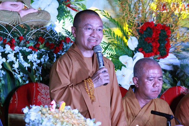 Trong quá trình làm phật sự, dù là tại gia hay xuất gia, những việc cần đến trí tuệ, lòng từ bi, tiền bạc, thời gian, công sức, bao giờ chúng ta cũng gặp phải rất nhiều nghịch cảnh, các chướng ngại duyên, các thử thách, trở ngại, khó khăn, thỉnh thoảng đó là sự hiểu lầm, thỉnh thoảng đó là sự phá đám, ganh tỵ, ác cảm với mình… Bản thân thầy đã đi qua 30 năm xuất gia chưa bao giờ nổ lực làm việc gì đầu tiên mà thành công, có khi đến lần thứ 3, có khi đến lầm thứ 10 mới đạt được kết quả chỉ khoảng 30% so với những gì mình mong đợi ban đầu. Nếu không nói điều này ra thì các đệ tử xuất gia và tại gia của thầy sẽ nghĩ thầy có phước báu rất lớn, làm cái gì thành tựu cái đó, tiền hô hậu ủng, muốn gì được đó, hiểu như thế là hiểu sai. Thầy muốn nói điều này để quý vị thấy rằng, trong quá trình làm đạo, trong quá trình phục vụ, phụng sự con người và nhân loại, không phải vì thiện chí của chúng ta, vì việc làm tốt của chúng ta, vì hành động giá trị của chúng ta mà người khác tán thán chúng ta, có khi họ còn phê phán, chống đối chúng ta nữa, bởi họ cho rằng chúng ta đang làm sai, làm việc có ảnh hưởng tiêu cực đến xã hội cộng đồng. Vì vậy, thầy khuyên các đệ tử, nếu gặp những tình huống đó thì không nên bỏ cuộc giữa chừng, không thất vọng, không chán nản cuộc đời và không được nghĩ những người phá phách chúng ta là những người kẻ thù của mình. Phải xem đó là lửa thử vàng, gian nan thử sức, giúp cho bồ đề tâm, từ bi tâm, phát nguyện tâm, hành trì tâm của chúng ta ngày càng được vững mạnh. Khi làm Phật sự, phải phát khởi từ tâm phụng sự, gặp trái duyên không nản lòng, không oán trách, chỉ sợ chúng ta không đủ thời gian, tài đức để làm, đừng sợ gian nan thử thách. Hãy cảm thấy hạnh phúc và nổ lực hết sức để làm, những buồn vui, hiểu lầm, ganh ghét là chuyện thường thôi. Đức Phật Thích Ca cũng từng trải qua những cung bậc bị người đời ghanh ghét, tỵ hiềm như thế, thầy hiểu được điều đó nên thầy luôn cố gắng làm tất cả, đồng hồi hướng phước báu này cho đạo pháp, cho đất nước. Một lần nữa, chúng tôi thay mặt chùa Giác ngộ và nhân danh cá nhân bày tỏ lòng tri ân sâu sắc đến thầy Bổn sư, các sư huynh, sư đệ, các bạn đồng tu, các đệ tử, những người ủng hộ, những cộng sự đã hết lòng giúp đở, ủng hộ chúng tôi suốt 30 năm qua. Nếu không có những tấm lòng cao cả vĩ đại của quý vị, chúng tôi cũng chỉ là một thầy Nhật Từ nhỏ bé mà thôi. Chính nhờ hành động vĩ đại này mà chúng tôi có cơ hội dấn thân phụng sự đạo pháp và cuộc đời. Nguyện cầu hồng ân Tam bảo gia hộ cho quý vị thân tâm thường lạc, mọi Phật sự sớm được viên thành.”