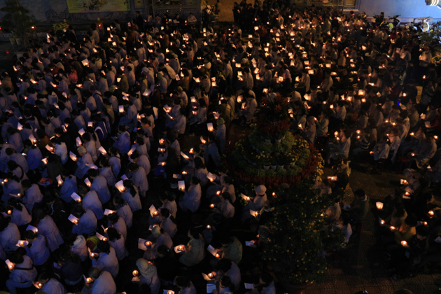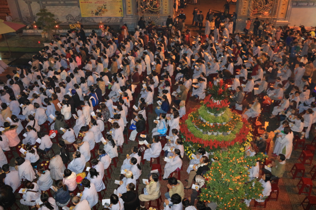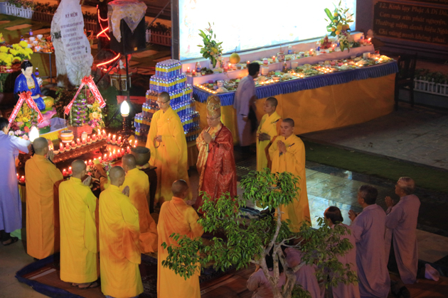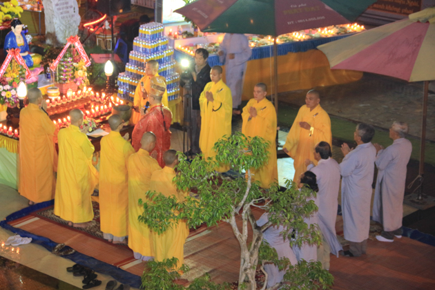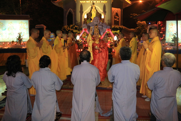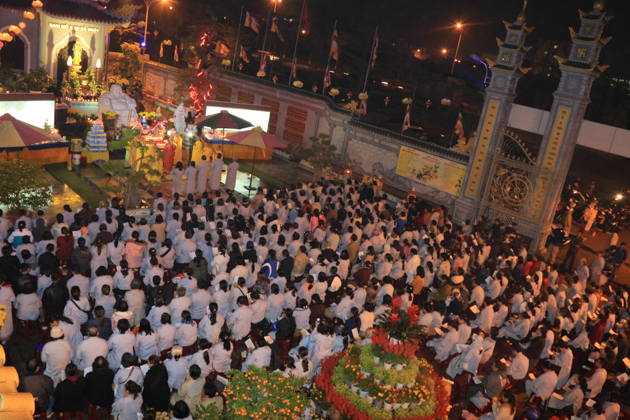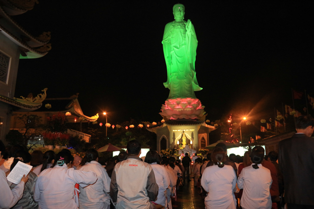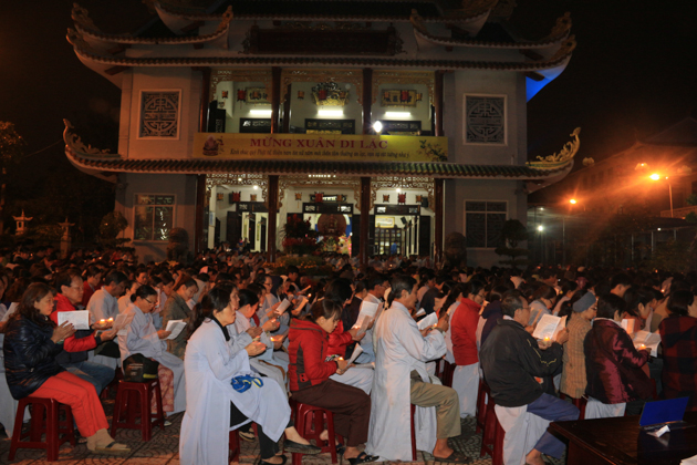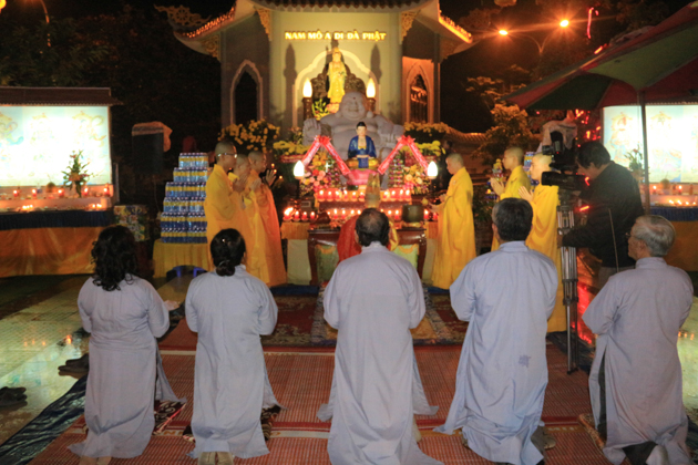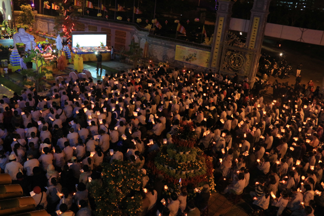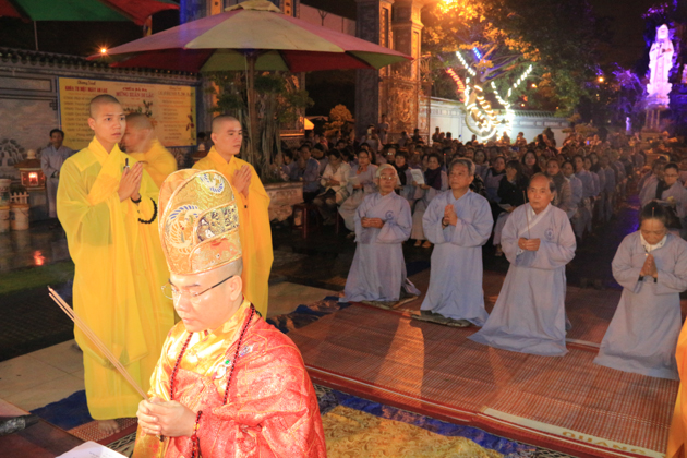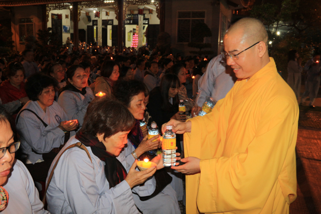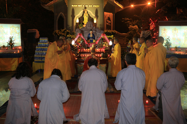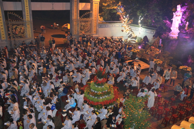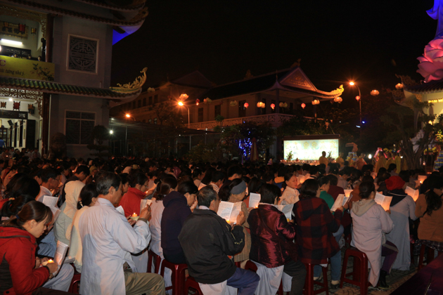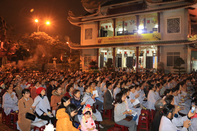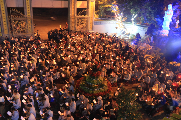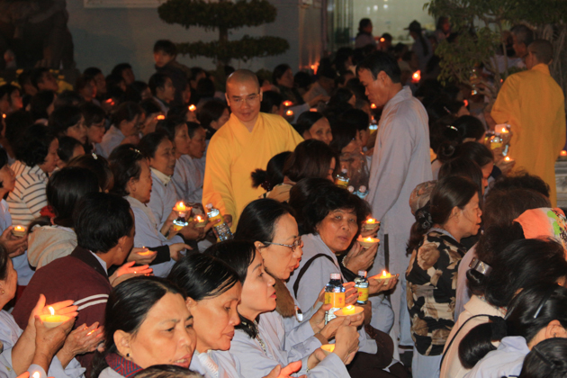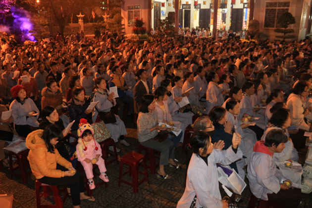 Buổi tối cùng ngày diễn ra Đại lễ cầu an, hoa đăng cúng dường cầu nguyện cho QUỐC THÁI DÂN AN – THẾ GIỚI HÒA BÌNH diễn ra trang nghiêm với sự tham dự của hơn 2.000 đạo hữu Phật tử dù thời tiết không được thuận lợi. Trong cái giá lạnh của thời tiết, những ngọn nến của Trí Tuệ và Từ Bi đã sưởi ấm con tim những người tham dự đêm hoa đăng.