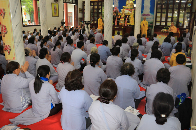 Sau lễ truyền giới Bát Quan Trai cho các giới tử tham dự khóa tu, ĐĐ. Thích Thông Đạo – UV HĐTS GHPGVN, Phó ban kiêm Chánh thư ký BTS GHPGVN Tp Đà Nẵng, Trú trì chùa Bà Đa đã gửi lời chúc các đạo hữu Phật tử cùng gia đình năm mới vô lượng an lạc.