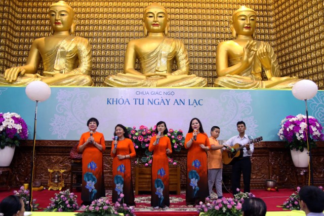 Kết thúc thời kinh buổi sáng là những giây phút quý Phật tử được hòa giọng cùng ban Đạo ca tập hát những ca khúc Phật giáo, tuyên dương chánh pháp, ca ngợi đạo đức, tình thương yêu giữa mọi người, mọi loài.