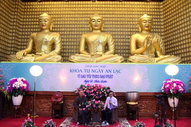 Chương trình được mong đợi nhất trong khóa tu Ngày an lạc lần thứ 17 này có lẻ là chương trình talk show; “Vì sao tôi theo đạo Phật” với nhân vật khách mời là MC, diễn viên, nghệ sĩ Hữu Luân và người dẫn chuyện là ĐĐ. Thích Quảng Tịnh, tăng đoàn chùa Giác Ngộ. Với hơn 1 giờ đồng hồ chia sẻ, bằng nghệ thuật và kinh nghiệm của một MC, diễn viên, nghệ sĩ Hữu Luân đã hâm nóng hội trường với chất giọng tươi vui, những câu chuyện dí dỏm nhưng rất thâm thúy, sâu sắc và đằng sau đó là cả một sự nghiệp thành công, lối sống đạo đức, mẫu mực của một Phật tử thuần thành. Quý đọc giả có thể xem chương trình trực tiếp tại link dưới đây: