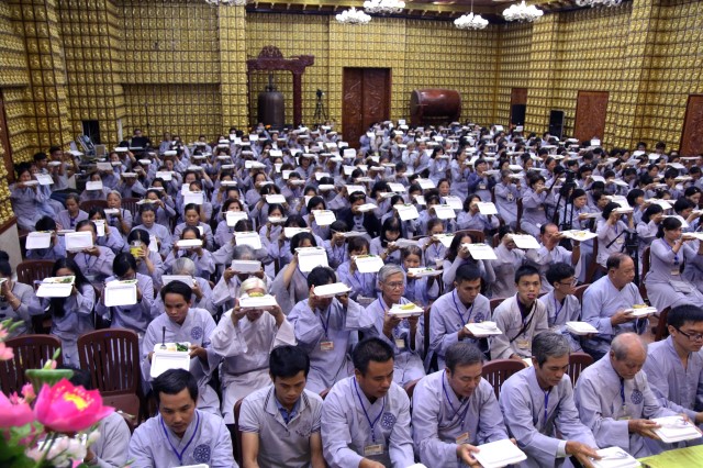 Kết thúc chương trình tu học buổi sáng là giờ quá đường trong chánh niệm do tăng đoàn chùa Giác Ngộ hướng dẫn. Quý hành giả cũng sẽ được BTC hướng dẫn chỗ nghỉ ngơi với đầy đủ tiện nghi tại chùa như không gian, chiếu, quạt hoặc máy lạnh.