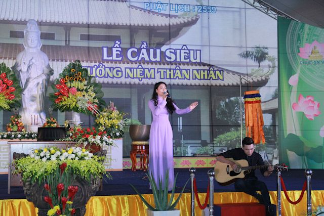 Cuối chương trình là phần văn nghệ do các ca sĩ về hát cúng dường lên chư tôn đức và đại chúng. Đây là một hoạt động văn hóa không thể thiếu trong mùa Vu lan, lời ca tiếng hát dễ truyền tải ý nghĩa của lòng hiếu thảo và đạo đức sống đến giới trẻ hiện nay, khi thời đại công nghệ dần dẫn con người rời xa thực tế, đặc biệt là quên đi tình thương yêu của cha mẹ.