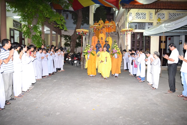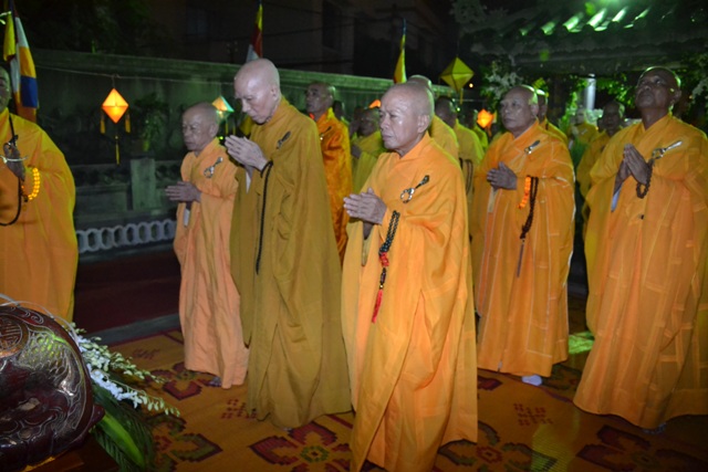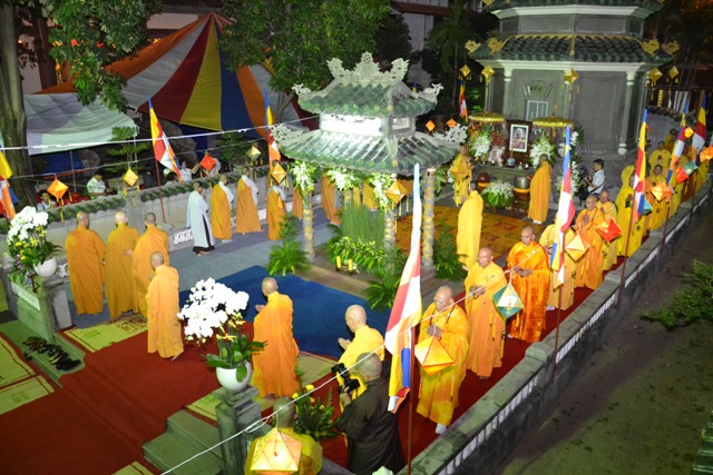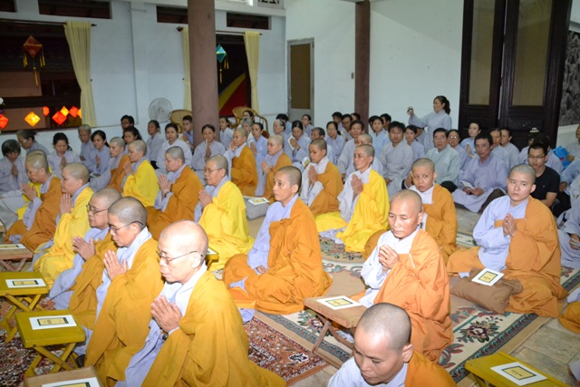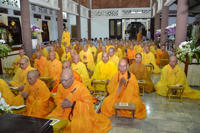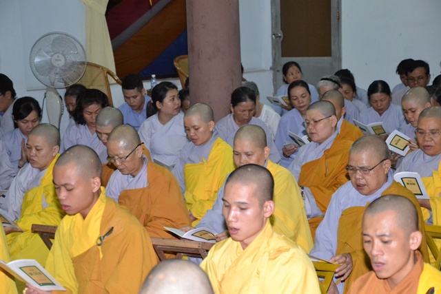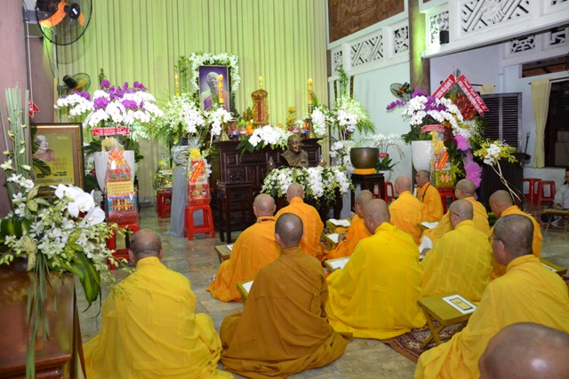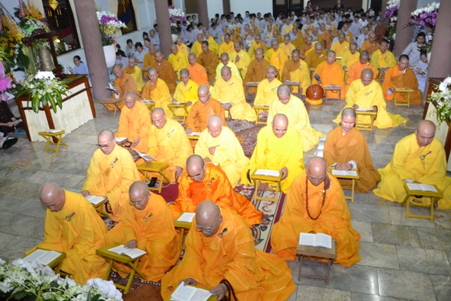 Buổi lễ tụng kinh chư Tôn đức Giáo phẩm trong Sơn môn Pháp phái Tường Vân, Thiền viện Vạn Hạnh và đông đảo Đạo hữu Phật tử các giới. Chư Tôn đức chánh niệm trong từng lời kinh nhịp mõ của Đại chúng Xuất gia cũng như tại gia đọc lại lời giáo huấn vắn tắt của Đức Từ Phụ trước lúc Nhập Niết Bàn.