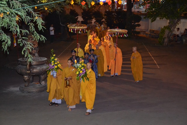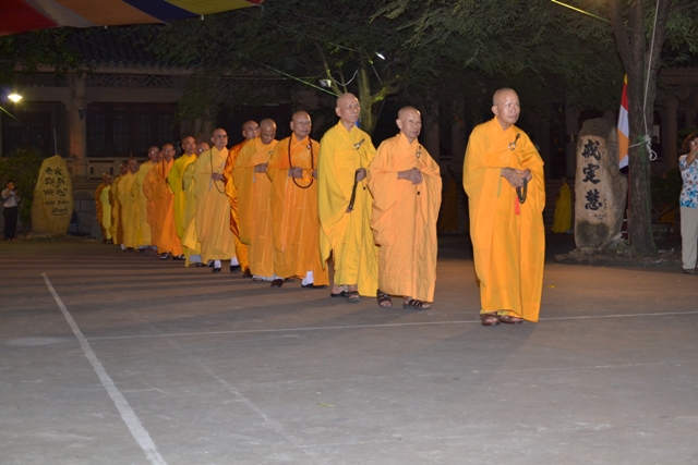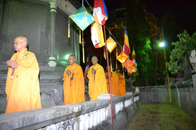 Sau thời tụng kinh Di giáo, chư Tôn Giáo phẩm đã trang nghiêm hữu nhiễu bảo tháp Pháp Lạc, nơi tôn trí nhục thân Đức Trưởng lão.