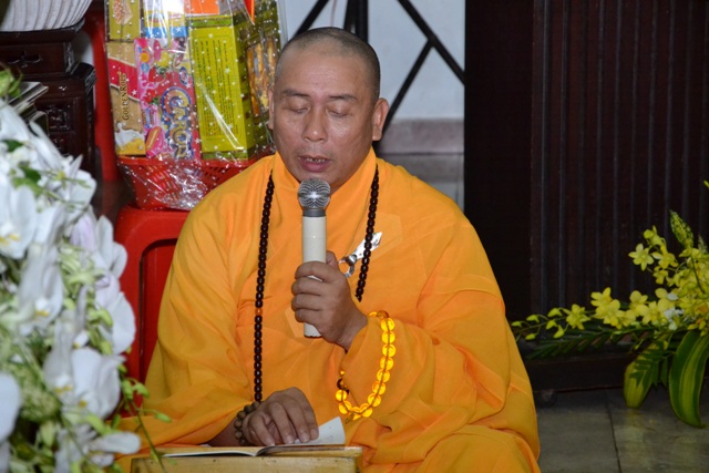 Buổi lễ tụng kinh chư Tôn đức Giáo phẩm trong Sơn môn Pháp phái Tường Vân, Thiền viện Vạn Hạnh và đông đảo Đạo hữu Phật tử các giới. Chư Tôn đức chánh niệm trong từng lời kinh nhịp mõ của Đại chúng Xuất gia cũng như tại gia đọc lại lời giáo huấn vắn tắt của Đức Từ Phụ trước lúc Nhập Niết Bàn.