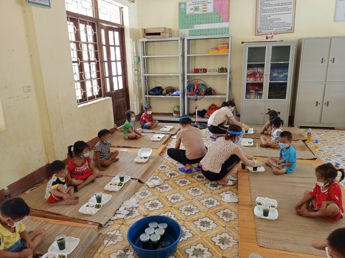 Bên cạnh thiếu thốn về cơ sở vật chất, việc chăm sóc trẻ mầm non gặp nhiều khó khăn, do phải xa bố mẹ nên nhiều em quấy khóc, không chịu ăn uống khiến thầy cô, các cán bộ y tế cũng vất vả hơn. Dù đã qua 3 ngày cách ly tập trong nhưng các em vẫn chưa quen, tình trạng khóc về đêm chưa được cải thiện.