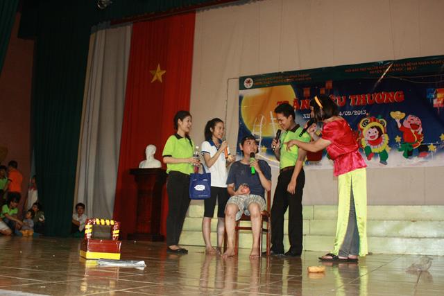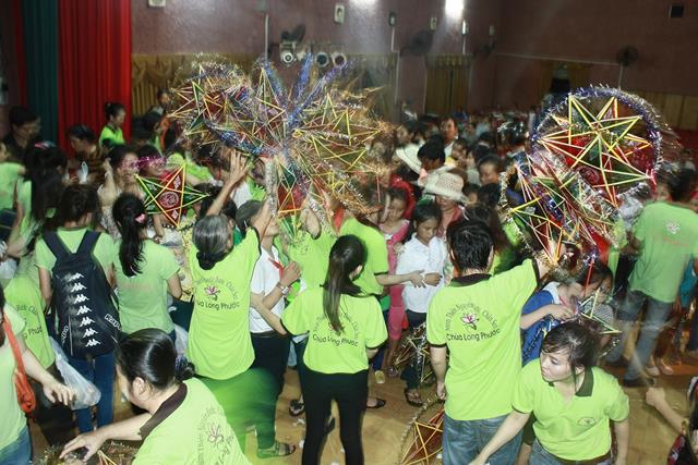 Trò chuyện cùng các em, được biết rằng không khí tươi vui vùng quê như thế này rất là hiếm, “Chừng nào biểu diễn văn nghệ vậy chú? Hình như có chú cuội nữa phải không ạ?” Chắc chắn rồi, mọi người đang cật lực chuẩn bị mọi thứ cho các em mà. Không khí rộn rã đang diễn ra nơi đây, người người nhanh tay chia quà, xếp lồng đèn, nơi tất bật chuẩn bị âm thanh, dựng sân khấu trong khi anh hoạt náo viên Bước Chân Sen đang sinh hoạt cùng các em phá tan không khí bỡ ngỡ ban đầu. Tất bật cùng với các bạn trẻ là bác sĩ Phương, chủ tịch Hội bảo trợ người khuyết tật và bệnh nhân nghèo huyện Xuyên Mộc, nhìn dáng đi nhanh nhẹn ít ai nghĩ rằng Bác đã về hưu và là người đã kêu gọi hơn 600 hộ gia đình nghèo đưa con em đến với Trung Thu năm nay. Thật là cảm động tinh thần làm việc của bác và các nhân viên của Hội.