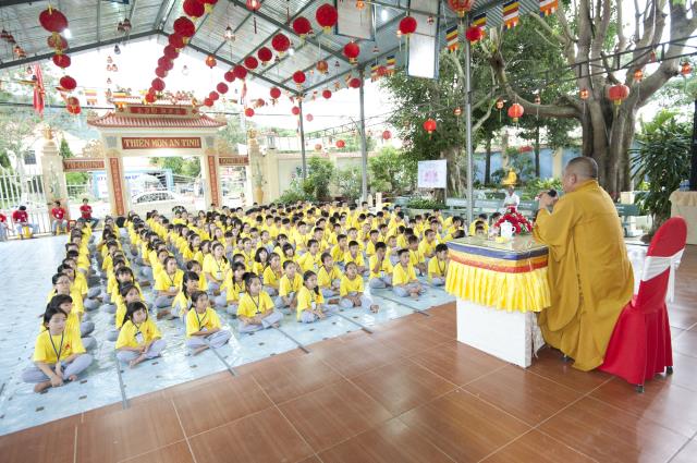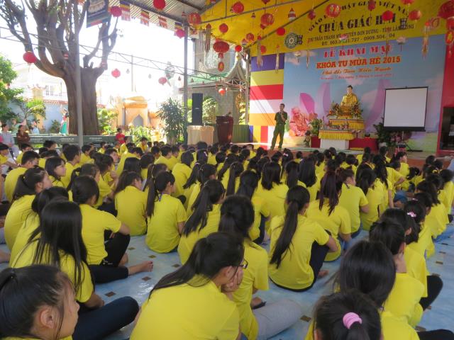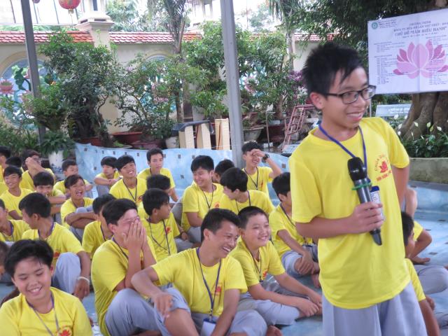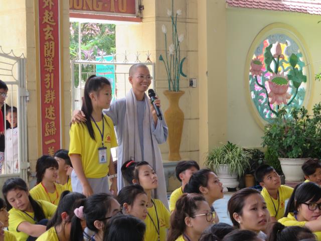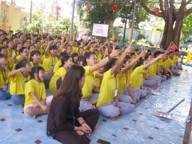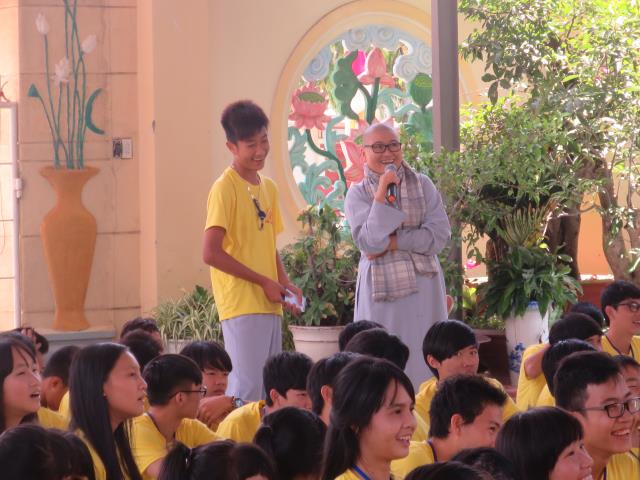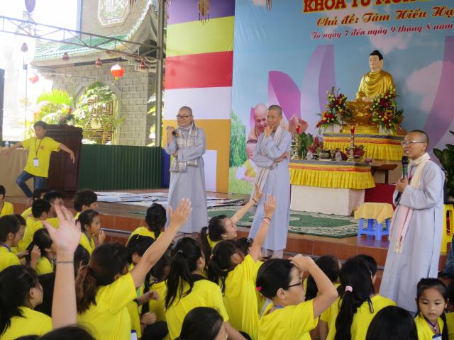 SC. TN Hạnh Đức, giảng sư khóa tu cũng đã đến với các bạn trẻ bằng bài học trực quan về lịch sử cuộc đời đức Phật. Tiết học rất vui nhộn, rất sối động vì các bạn được khích lệ tinh thần học tập bằng nhiều phần thưởng hấp dẫn. Chỉ cần qua 1 tiết học, thì 300 bạn trẻ tại khóa tu đã hiểu rất rõ về cuộc đời đức Phật Thích Ca Mâu Ni.