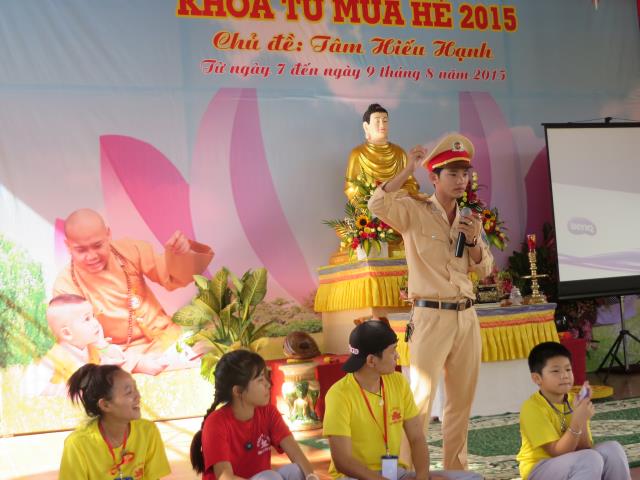 Cũng tại khóa tu mùa hè “Tâm hiếu hạnh” chùa Giác Hải, ĐĐ. Thích Trí Định, trưởng BTC khóa tu đã cho các em tham gia giao lưu với ông Nguyễn Dương Thế, cán bộ phòng cảnh sát giao thông huyện Đơn Dương về “An toàn giao thông – phòng chống ma túy”. Đây là buổi giao lưu rất căn bản, cũng rất ý nghĩa vì nó giúp các em định hướng và có cách nhìn, cách sống đúng hơn cho tương lai của mình.