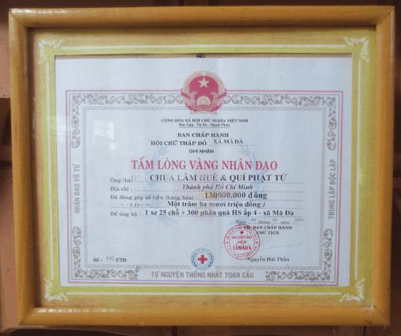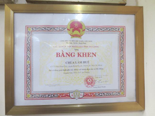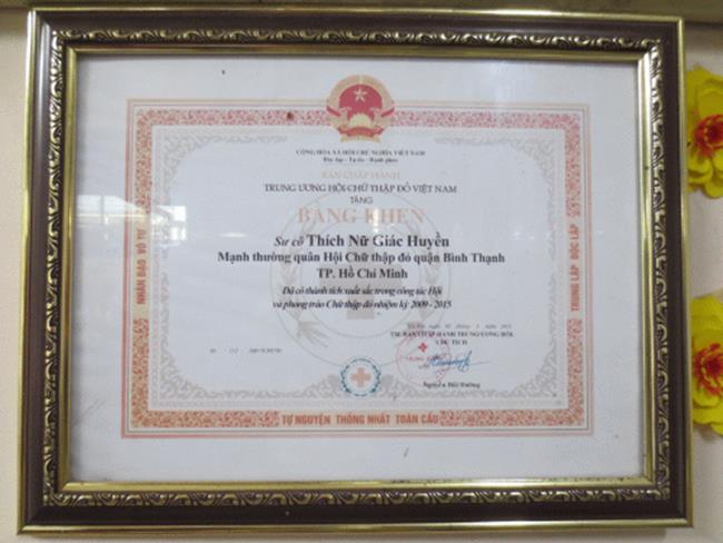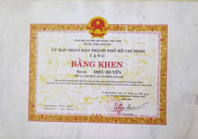 Chùa Lâm Huê nói chung và sư bà Diệu Huyền nói riêng đã nhận được nhiều bằng khen của thành phố.
